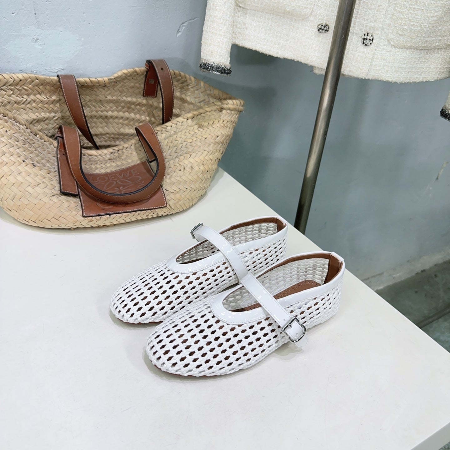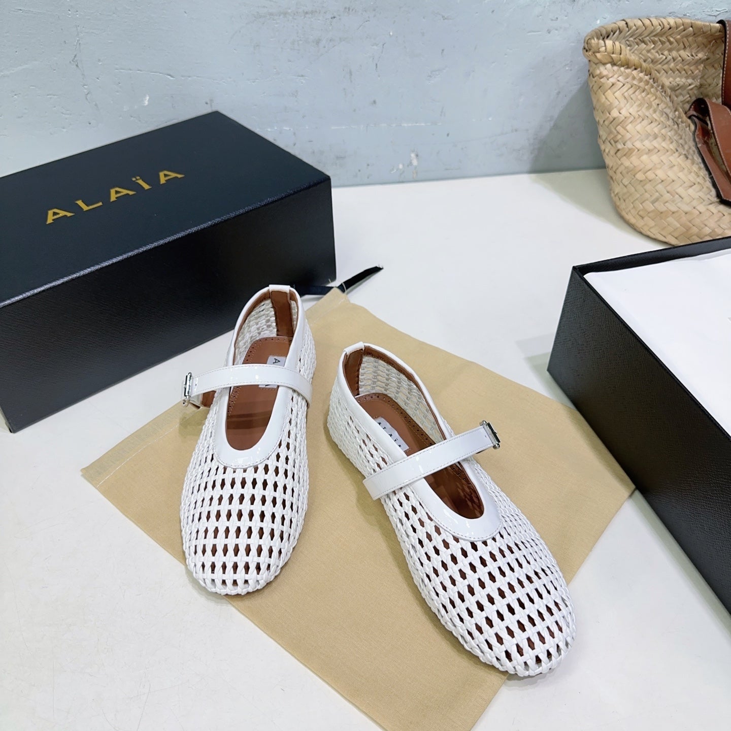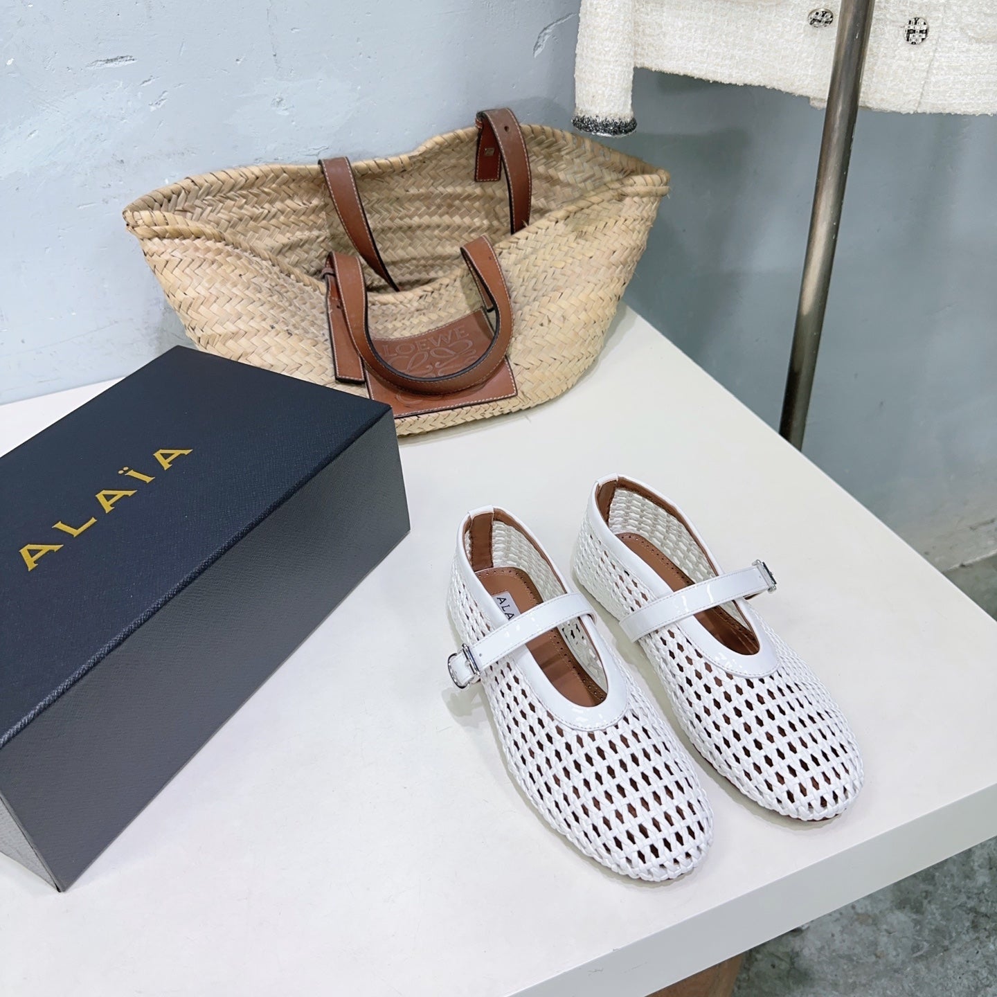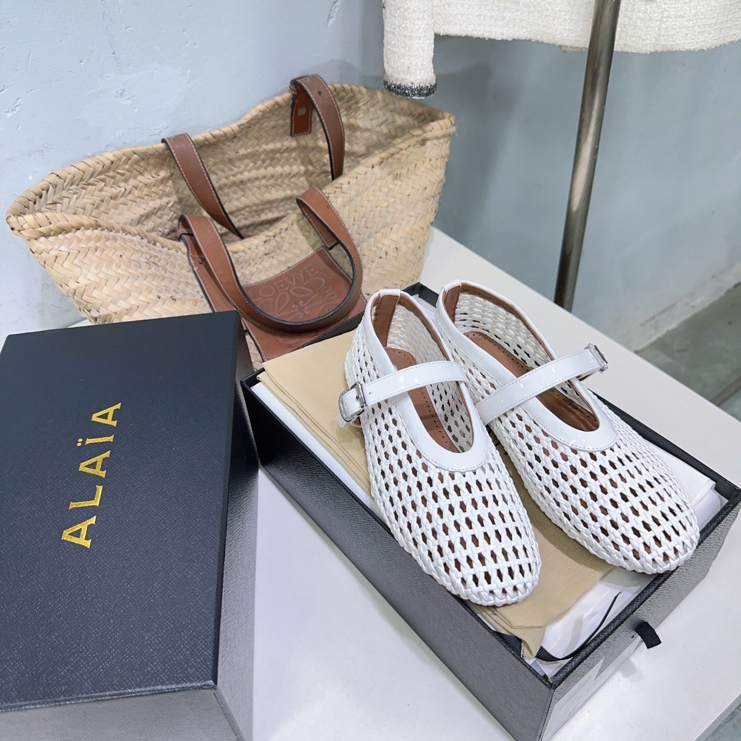 Alaia 25 Marry Janes Ballet Flats White Wool Sheepskin 300455