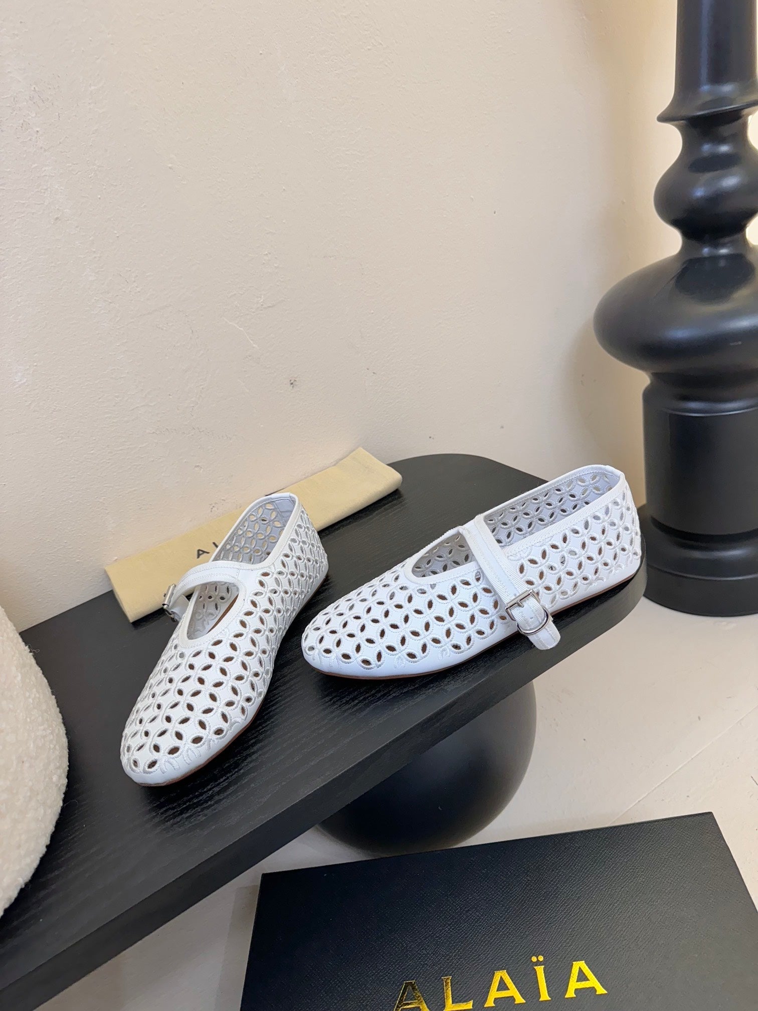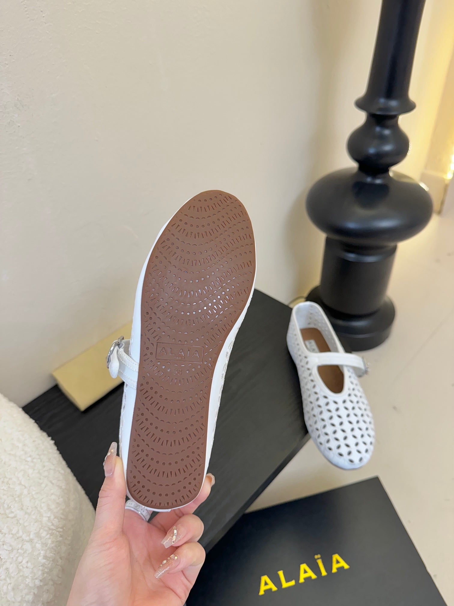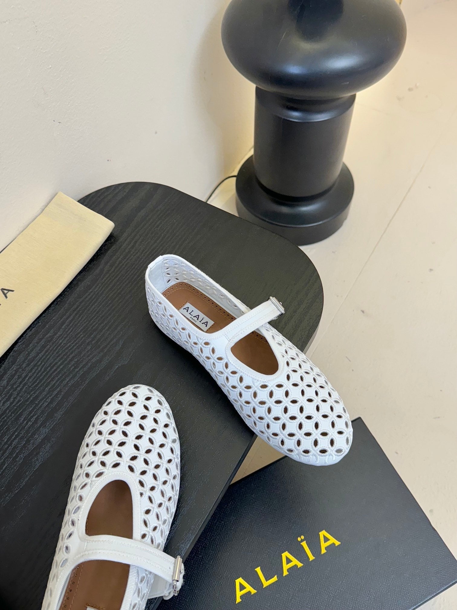 Alaia 25 Mary Jane Mesh Ballet Flats White Calfskin 297033