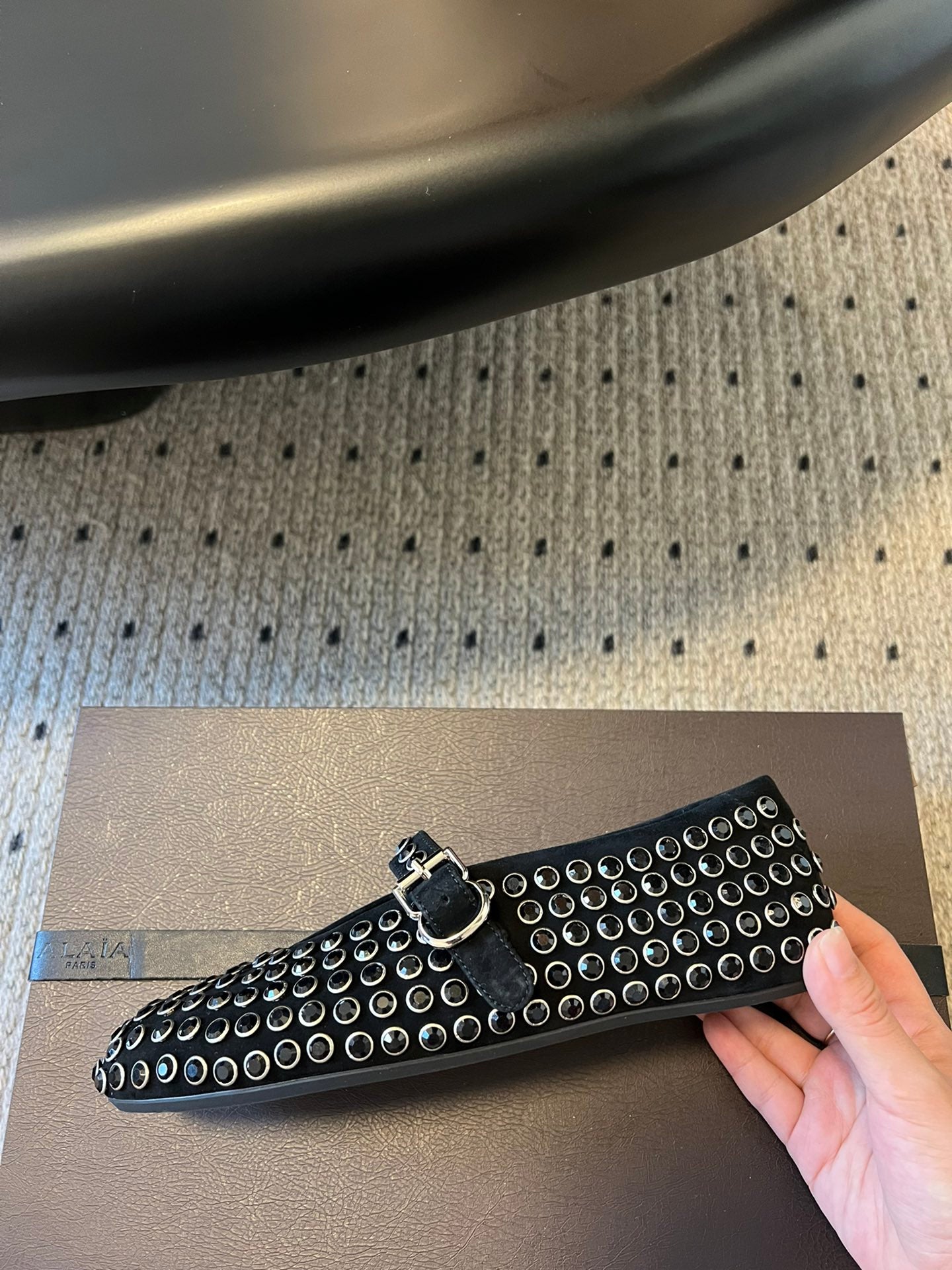 Alaia 25 Strass Ballet Flats Black Suede Goatskin 303726