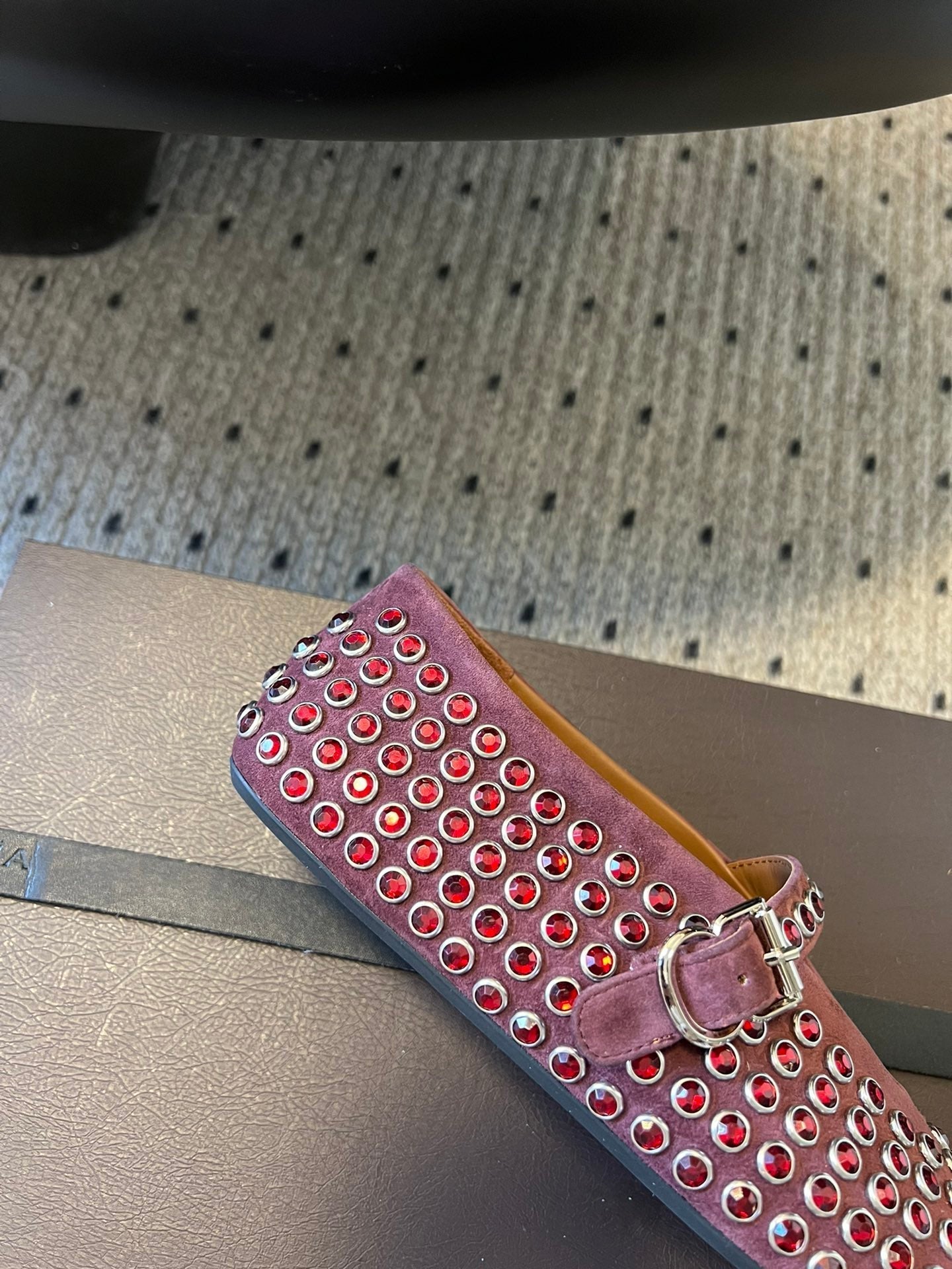 Alaia 25 Strass Ballet Flats Garnet Red Suede Goatskin 303725