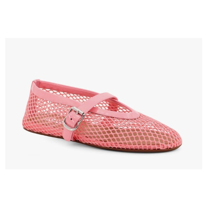 ALAIA BALLET FLATS IN LIGHT PINK MESH FISHNET
