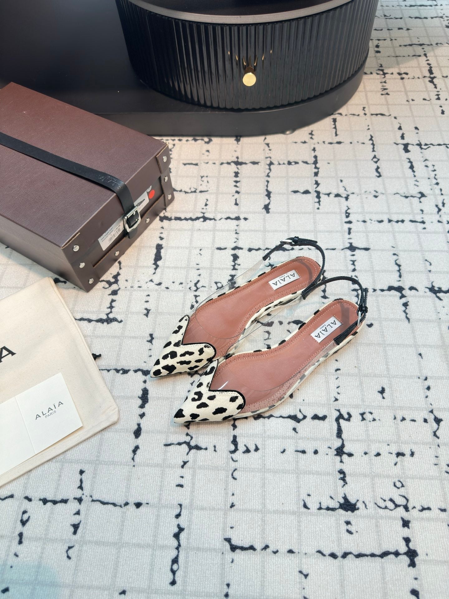 ALAIA FLAT SLINGBACK IN BLACK MIX WHITE PATENT CALFSKIN AND FILM