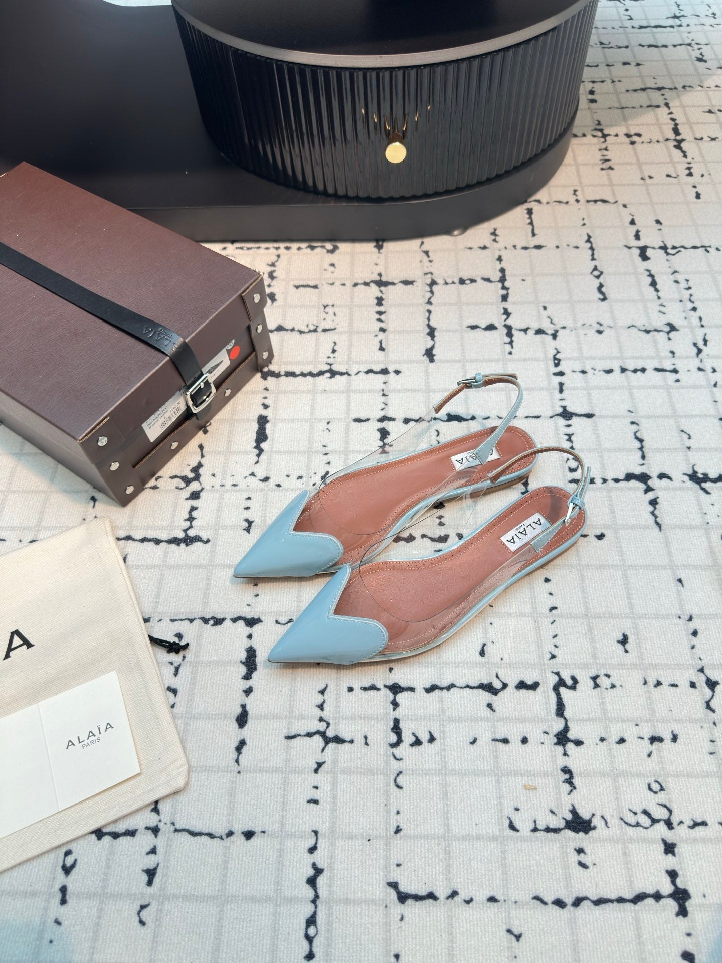 ALAIA FLAT SLINGBACK IN LIGHT BLUE PATENT CALFSKIN AND FILM