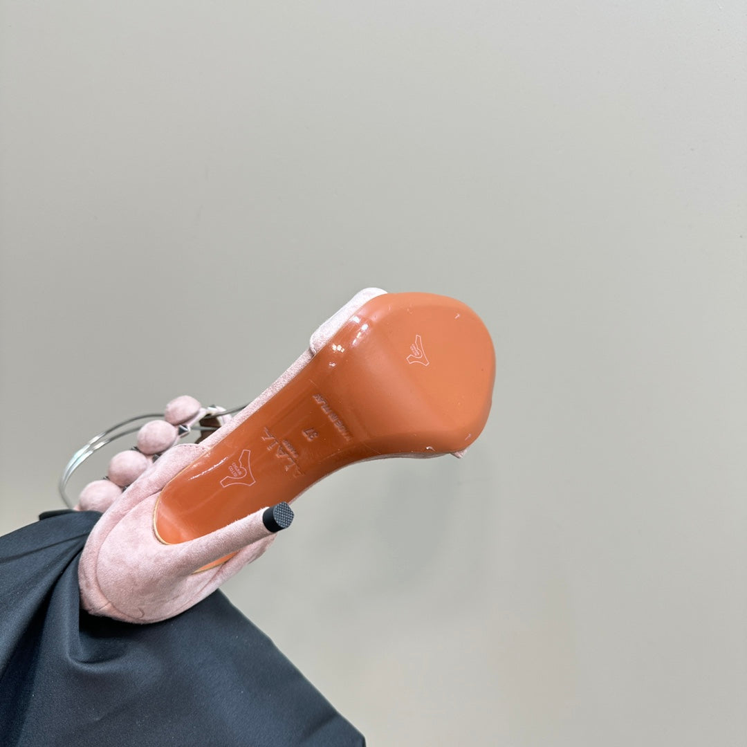 ALAIA HIGH HEEL SANDAL 10 CM IN LIGHT PINK SUEDE