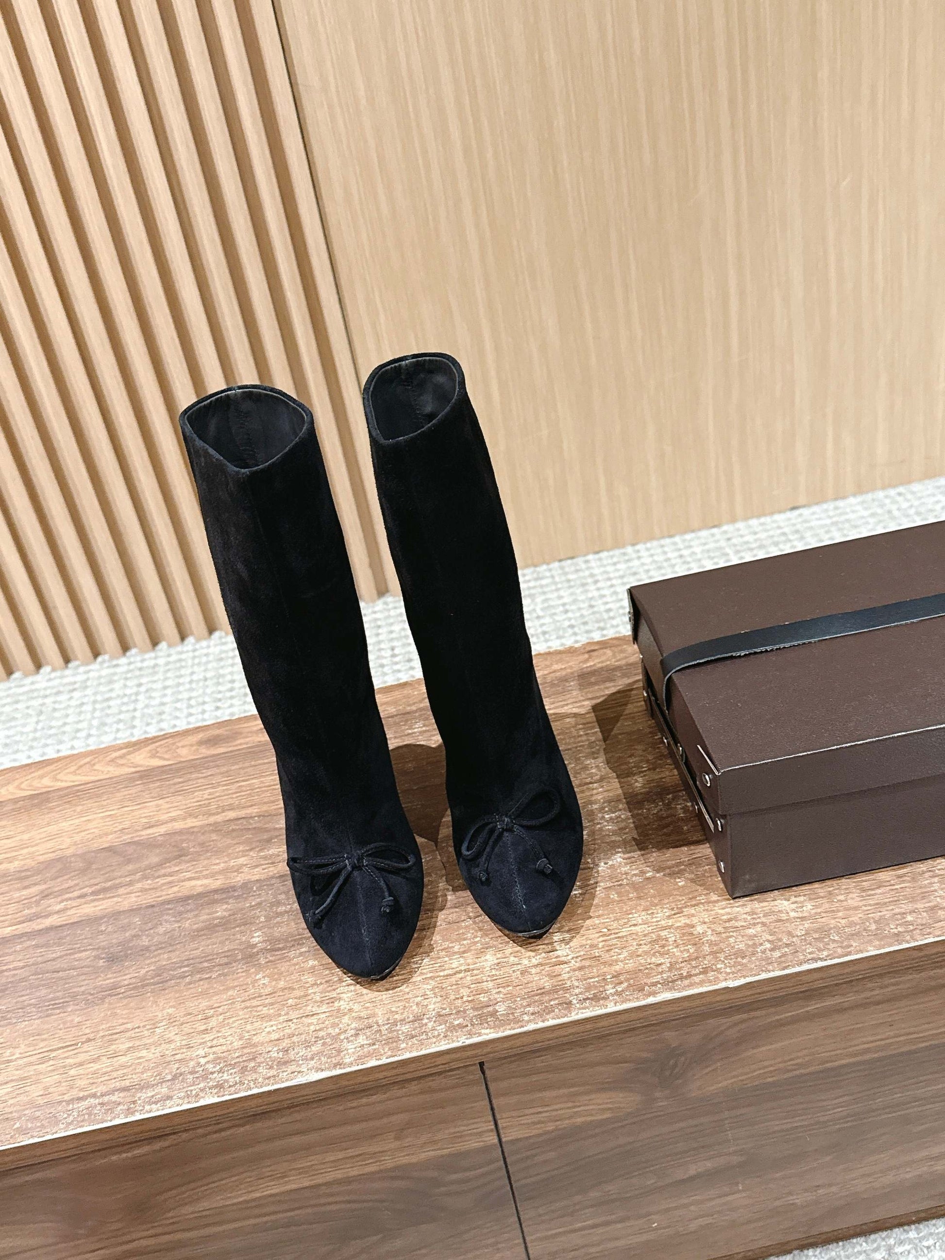 ALAIA high-heeled short boots black suede 386011