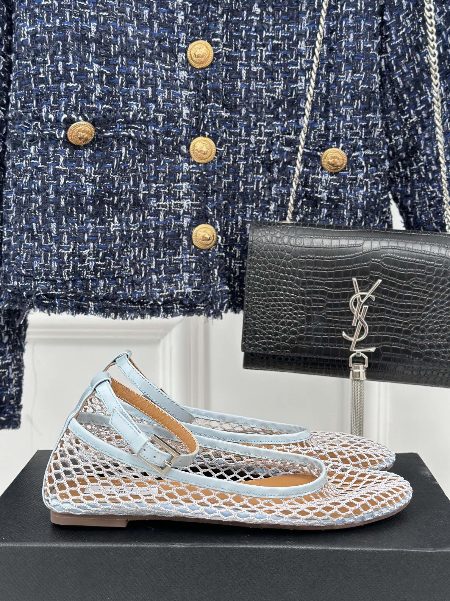 Alaia Mary Jane Ballet Flat Light Blue Lambskin 293231