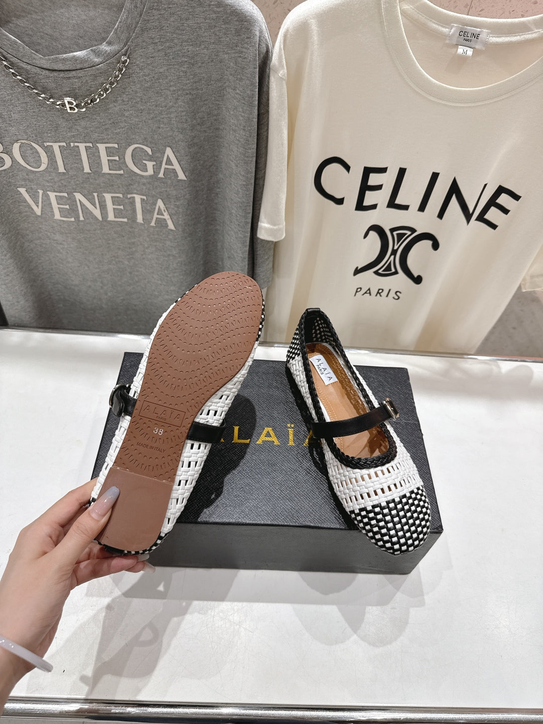 ALAIA MARY JANE FLATS white mix black woven calfskin pattent