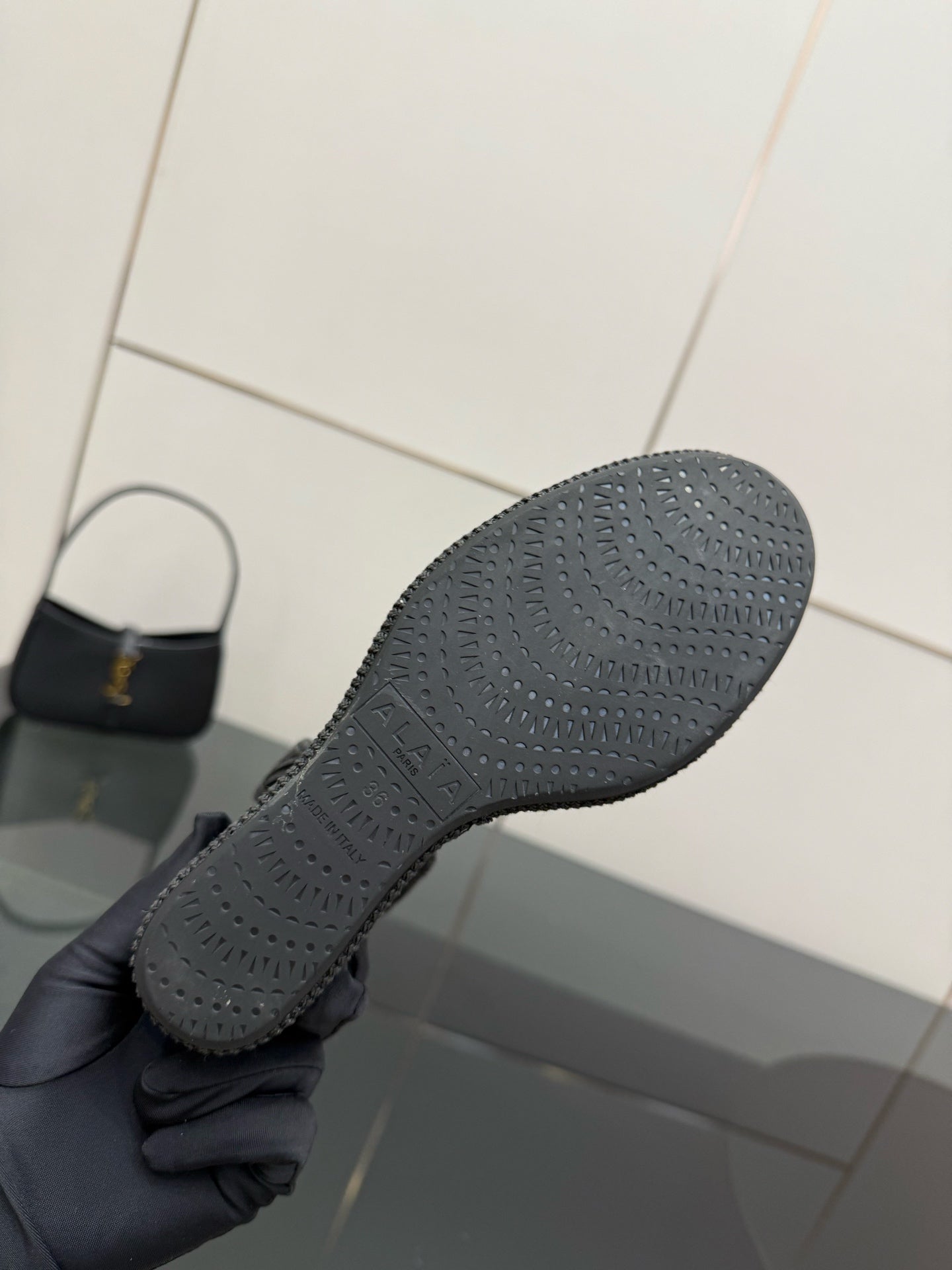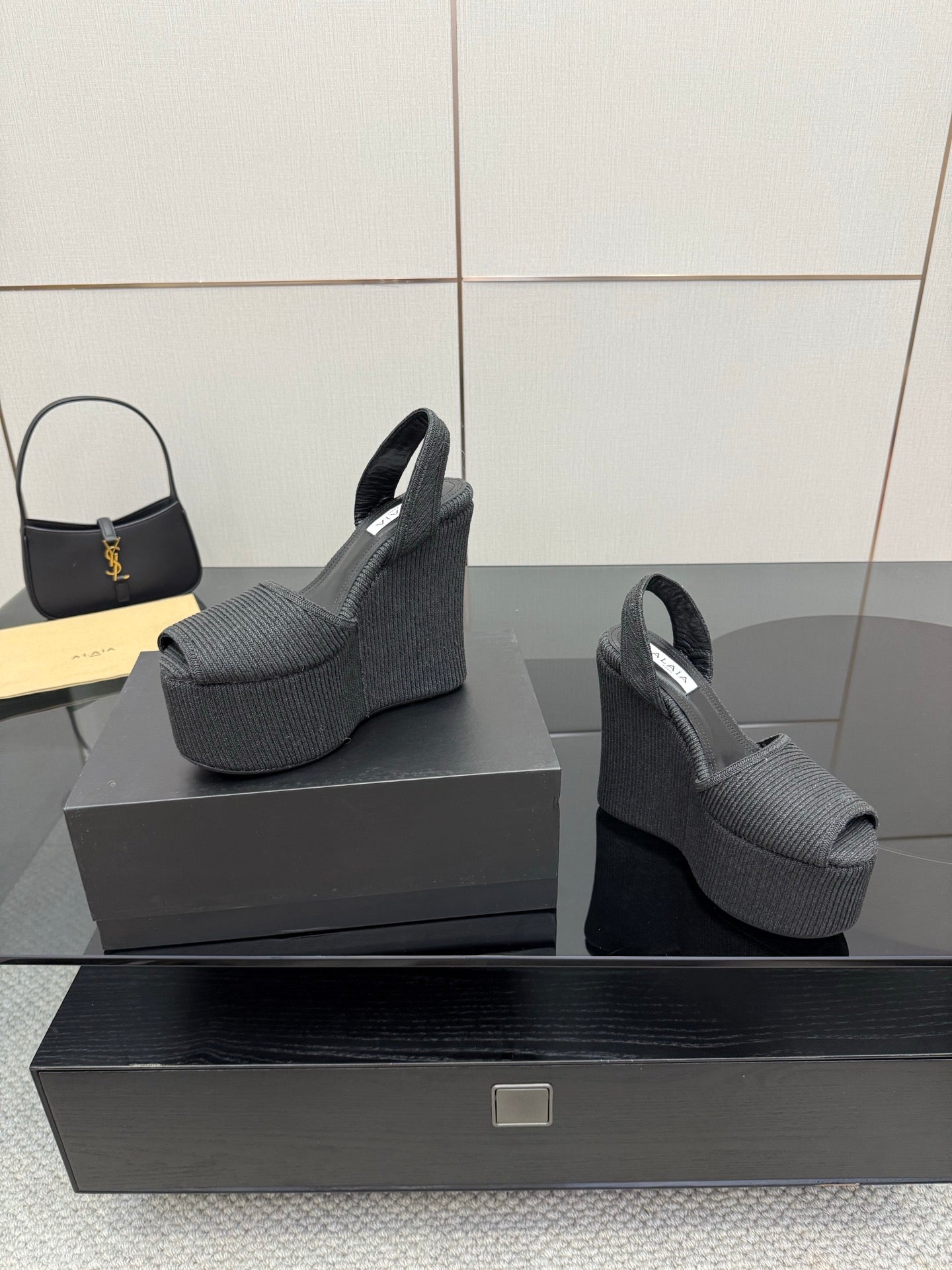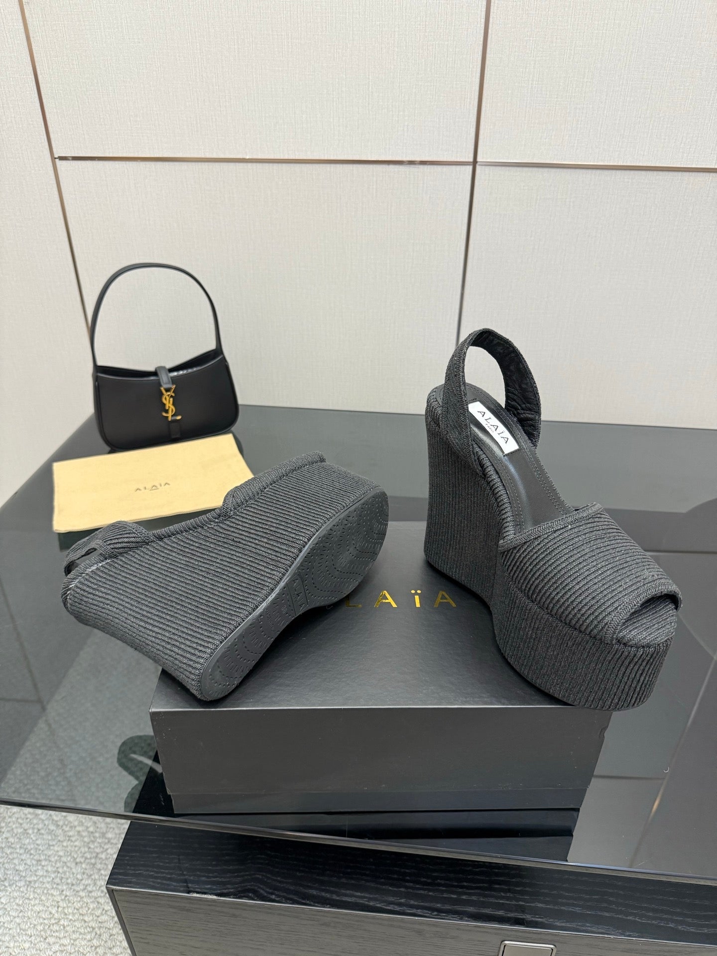 ALAIA platform sandal black sheepskin 389631
