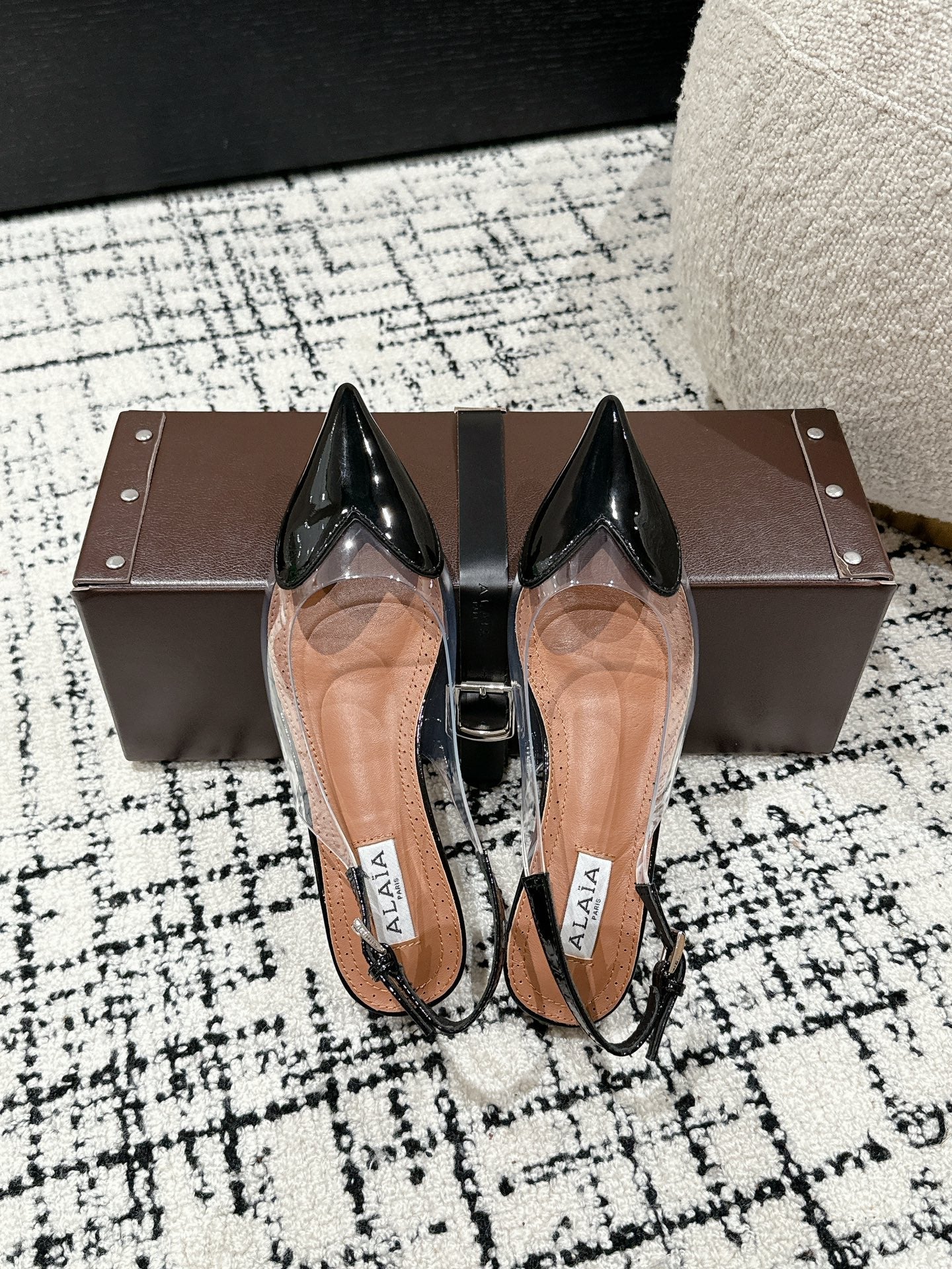 alaia slingbacks flat optic black heart lambskin