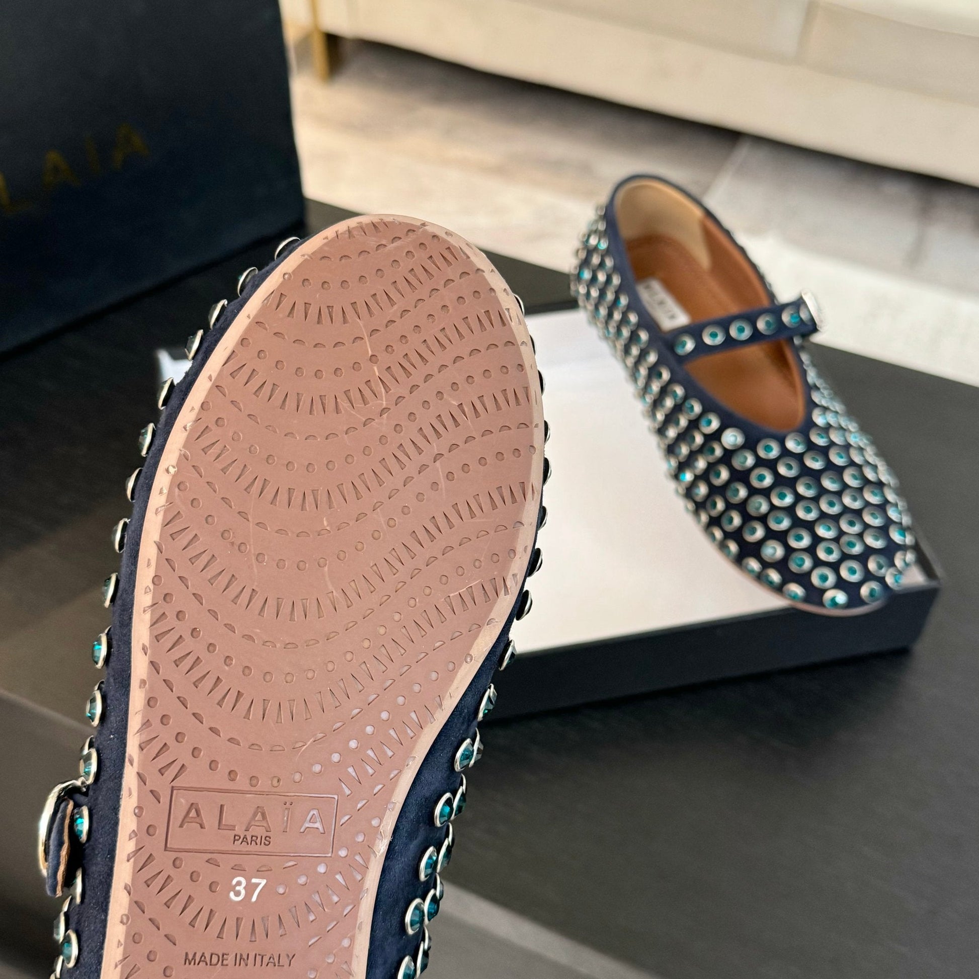 Alaia Strass Ballet Flats In Deep Blue Suede Stone 935185