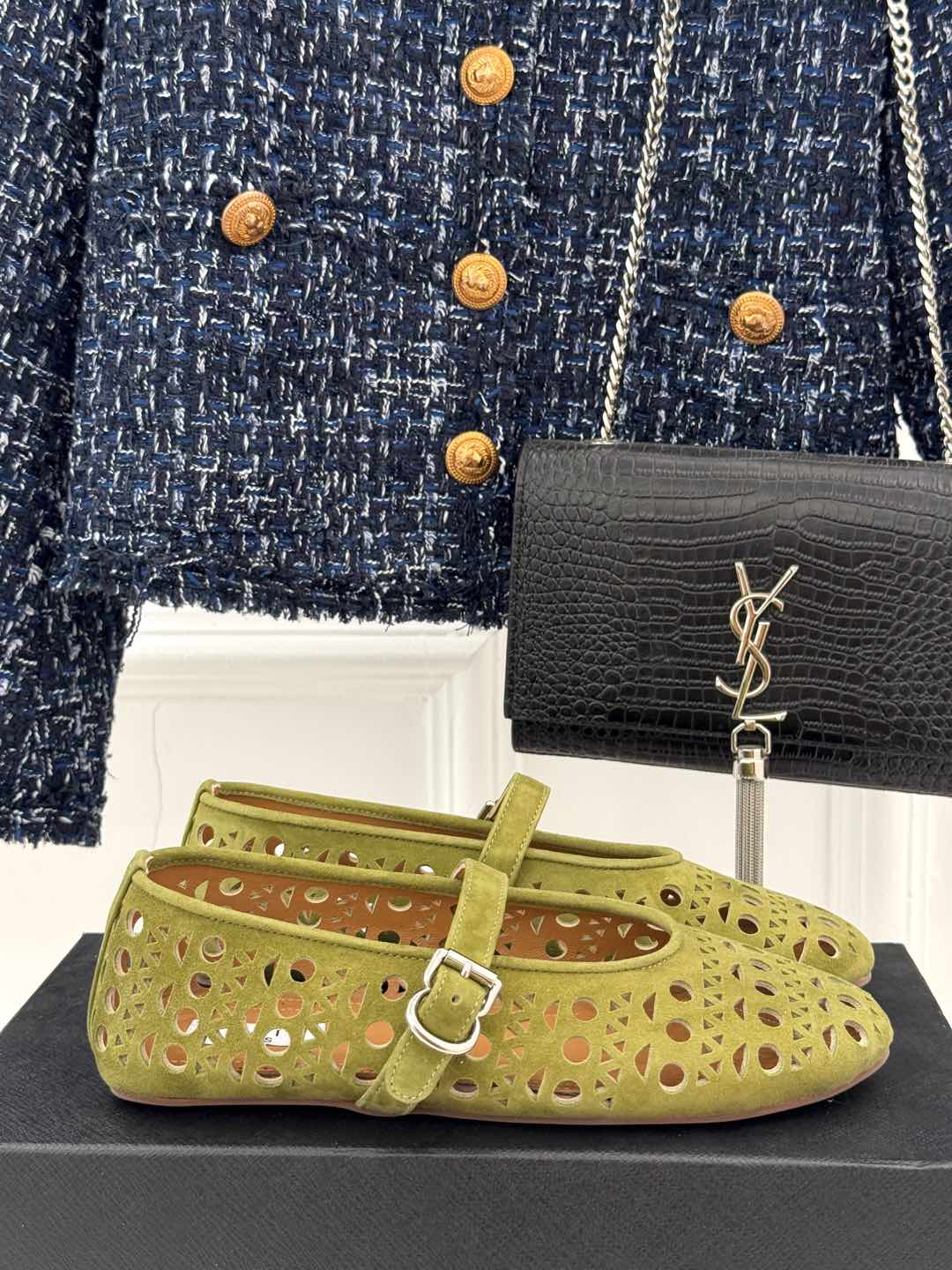 Alaia Women's Ballet Flat Avocado Green Suede 293223