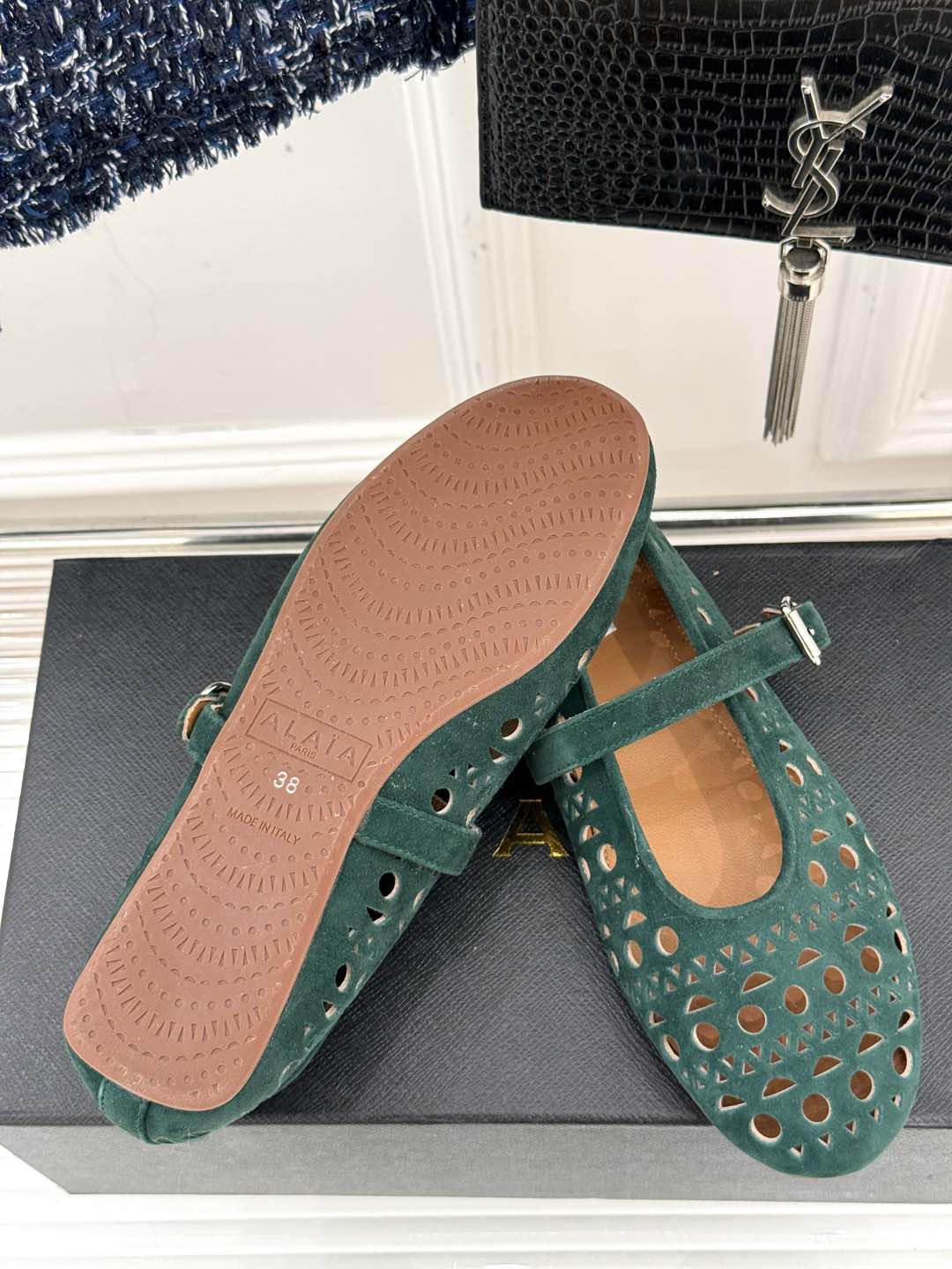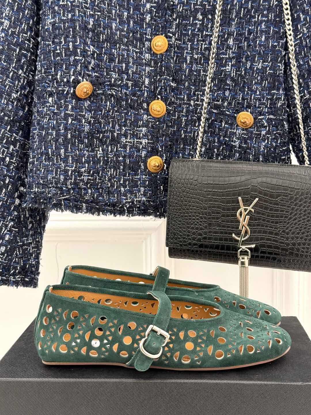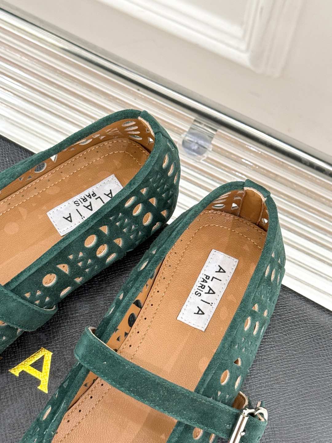 Alaia Women's Ballet Flat Emerald Green Suede 293226