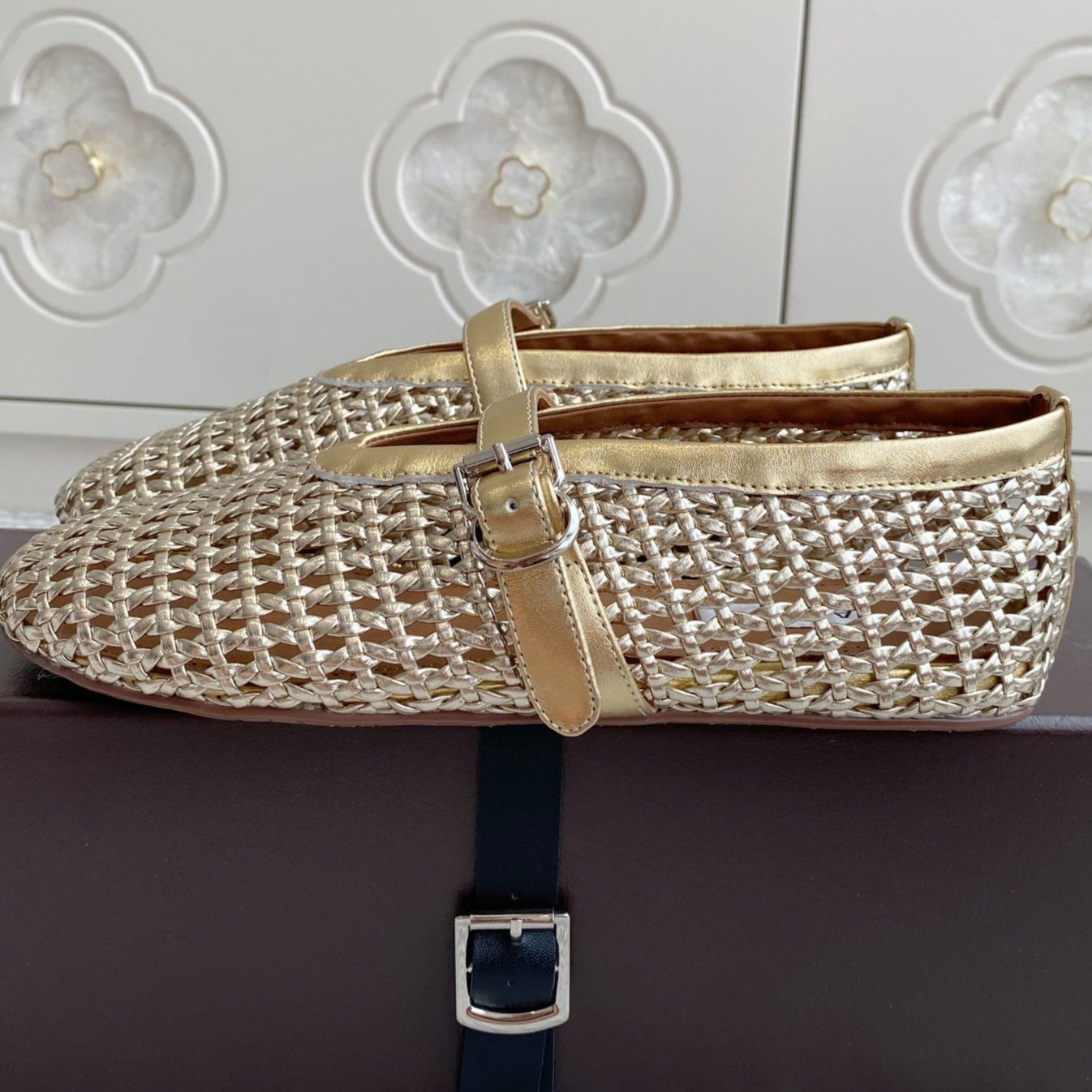Alaia Women's Ballet Flat Gold Lambskin 291053
