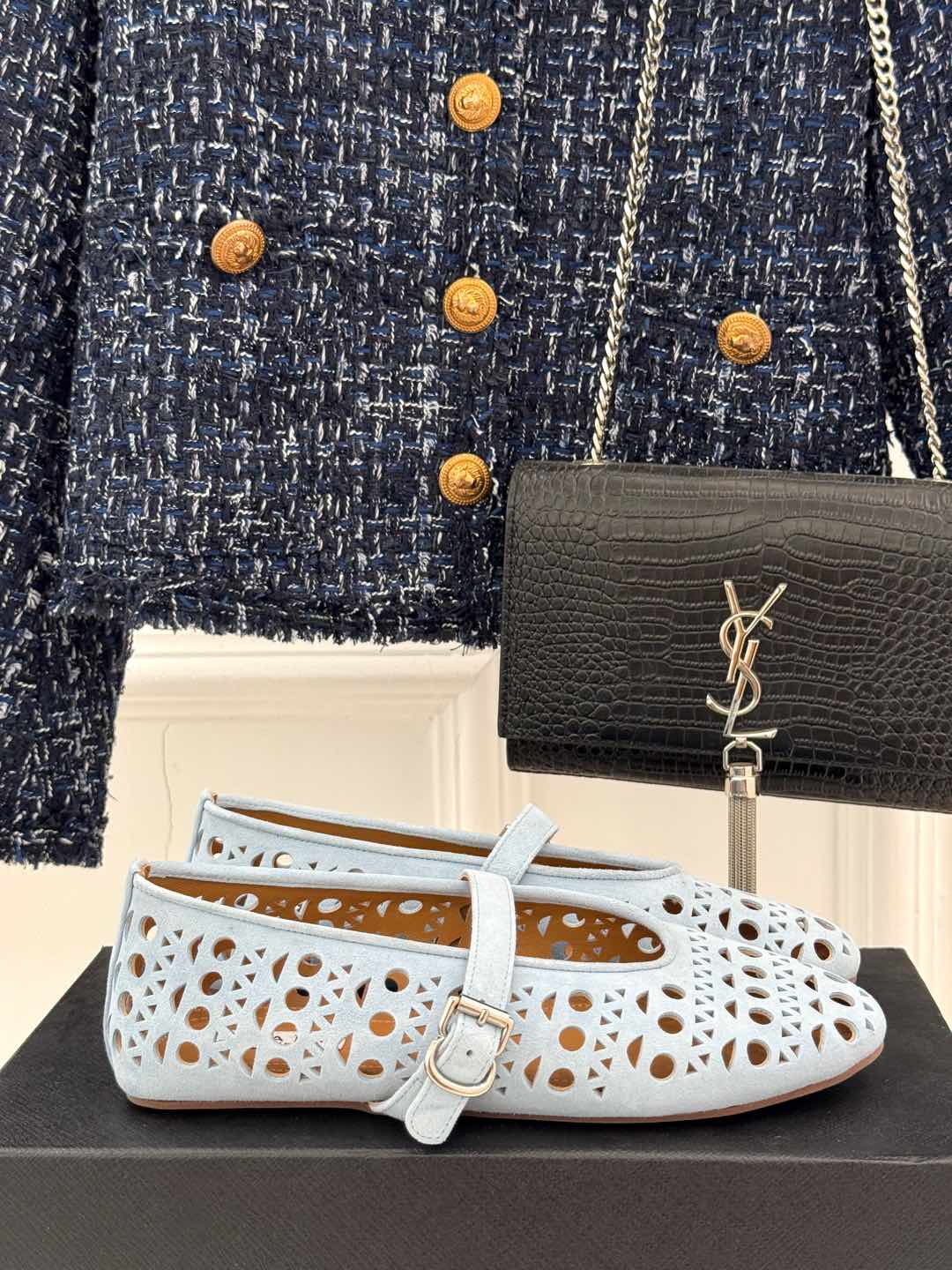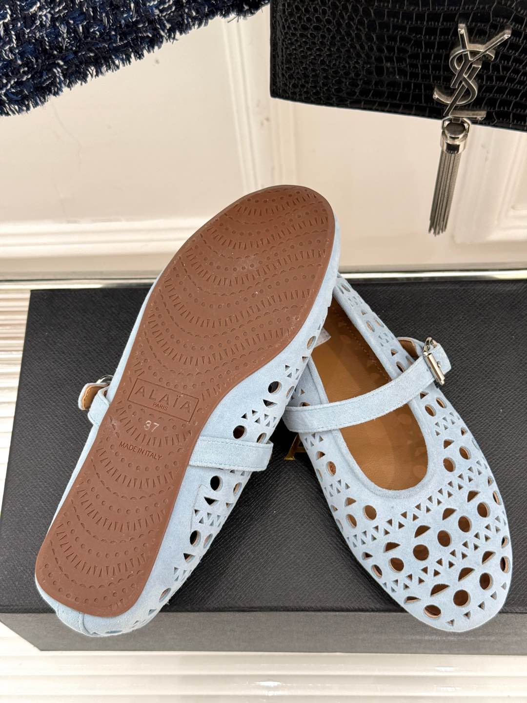 Alaia Women's Ballet Flat Light Blue Suede 293224