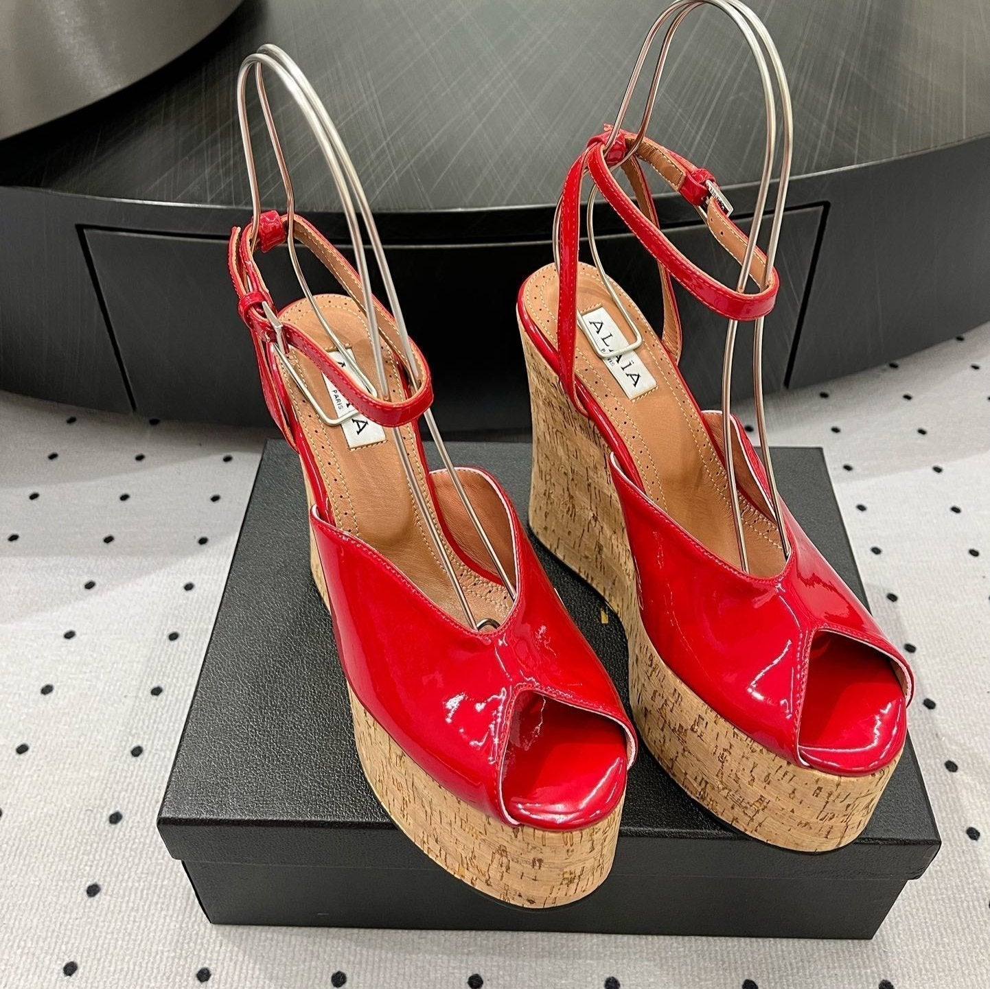 Alaila Wedge Sandals 135mm In Red Glossy Lambskin 954901