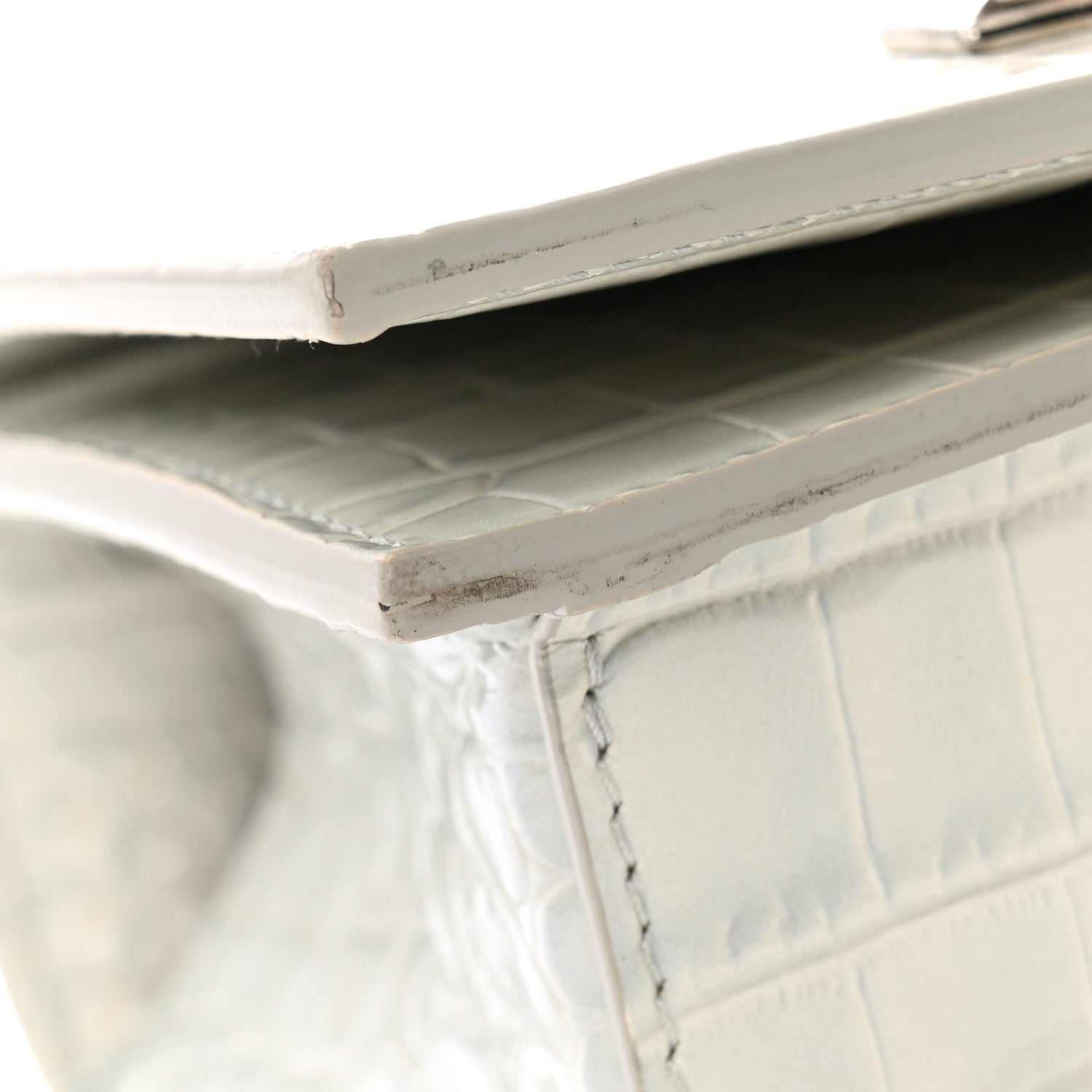 Calfskin Shiny Crocodile Embossed Mini Ombrè Jeweled Satchel Ivory Grey
