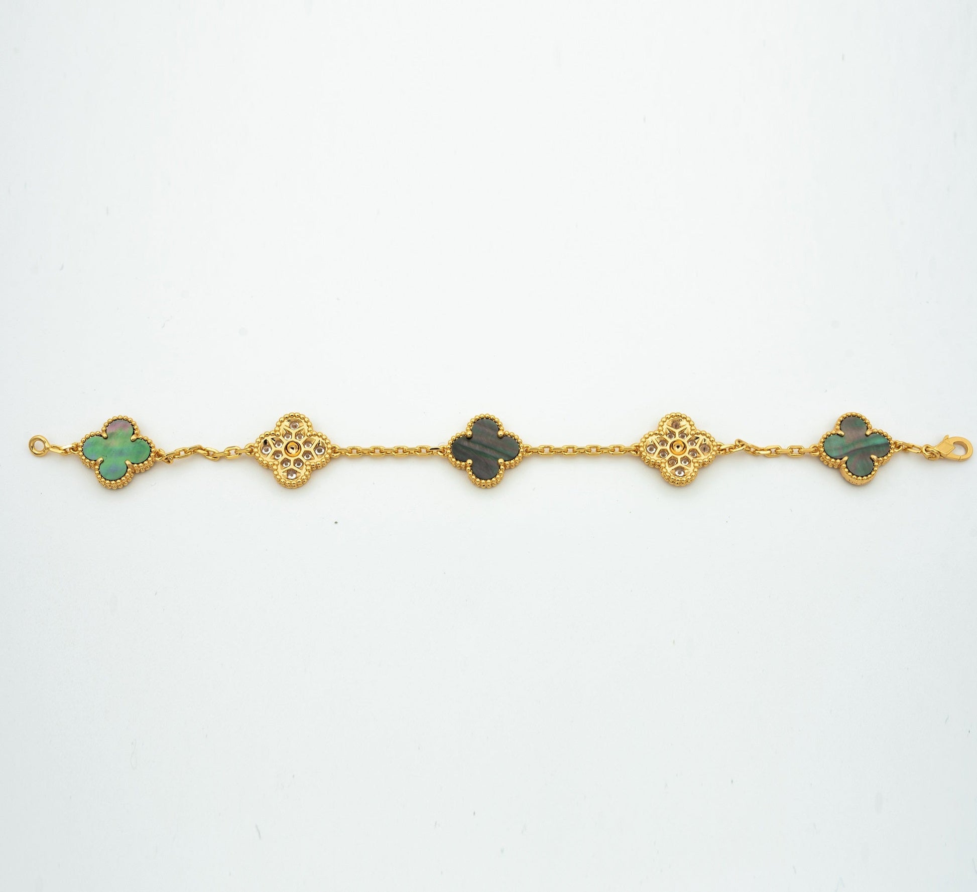 CLOVER BRACELET 5 MOTIF MOP AND DIAMOND