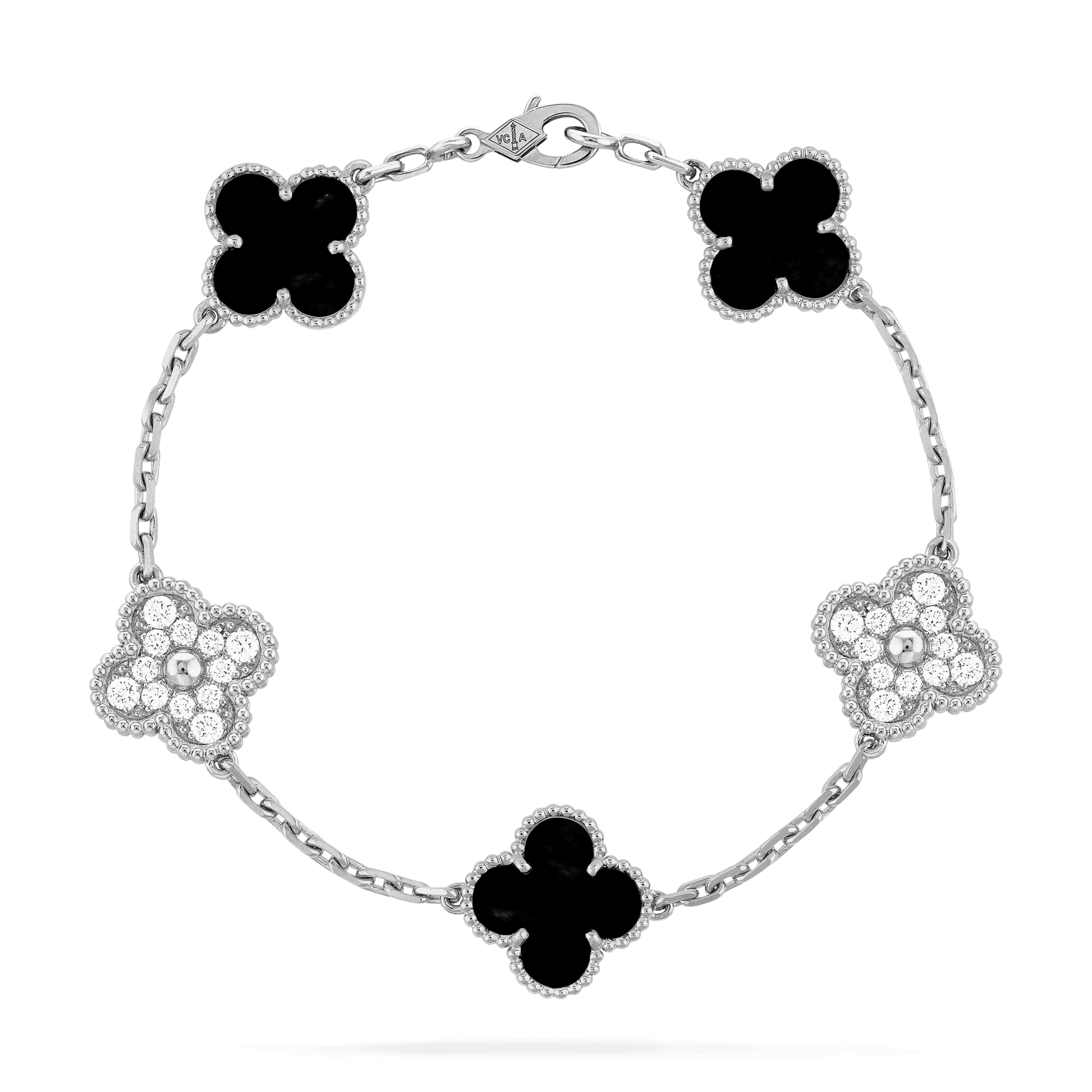 CLOVER BRACELET 5 MOTIF ONYXS DIAMOND