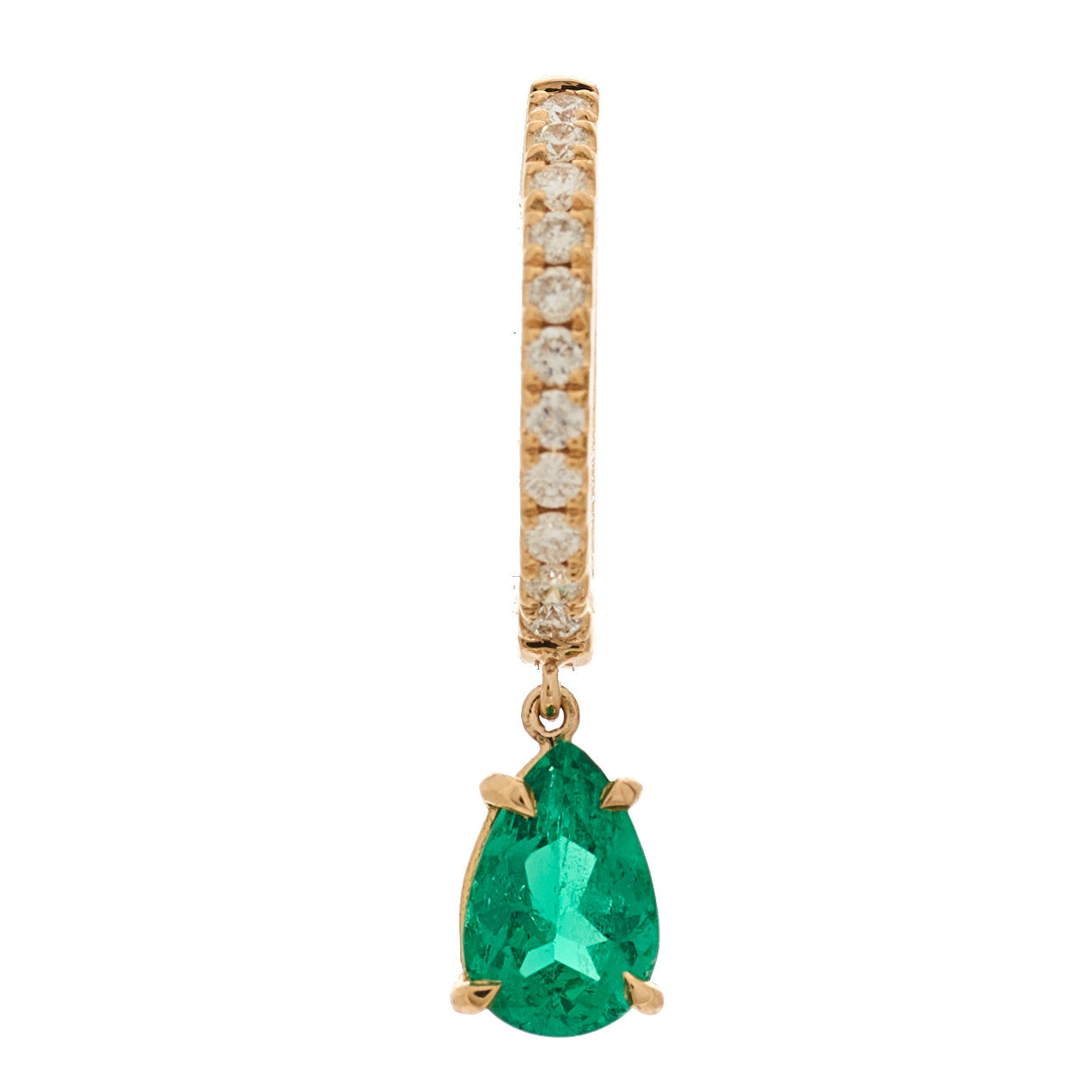 18K Rose Gold Diamond Emerald Pear Drop Huggie Earring