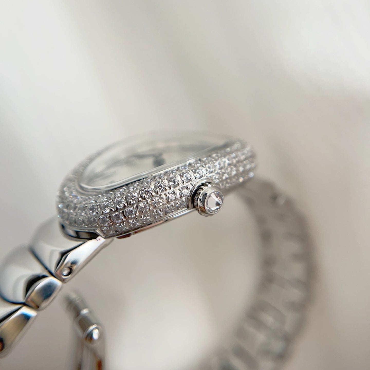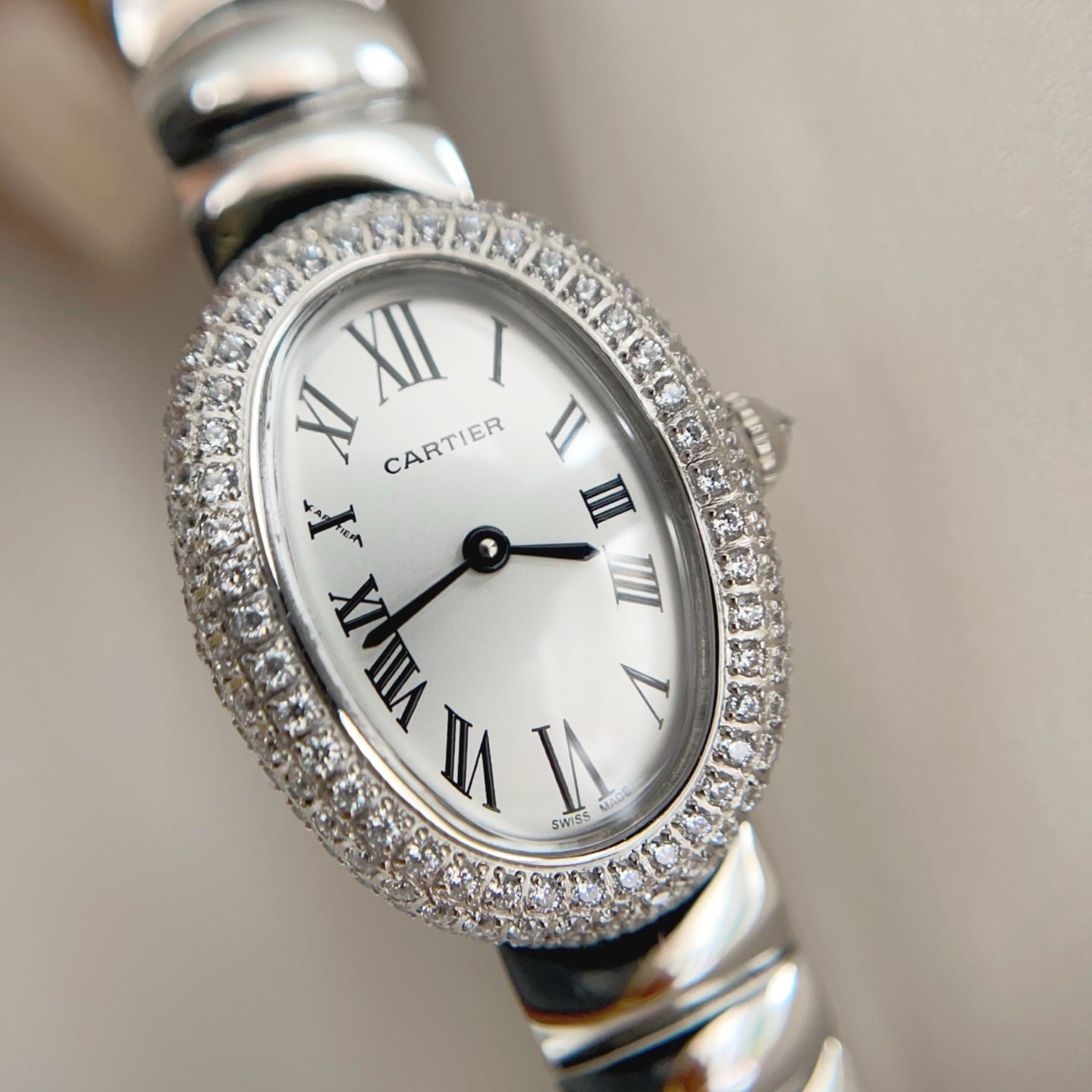 Baignoire Stainless Steel White Dial Diamond Bezel