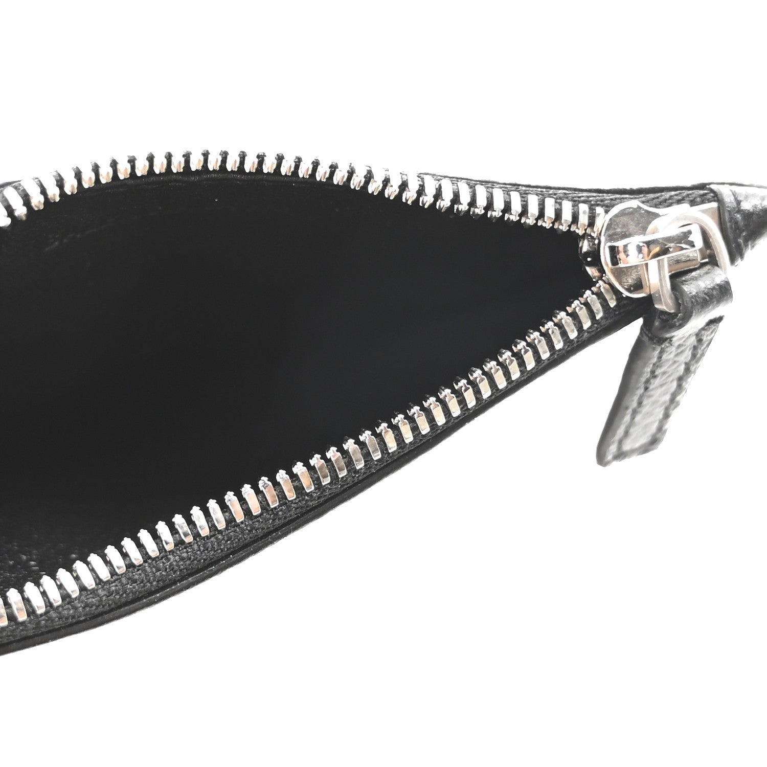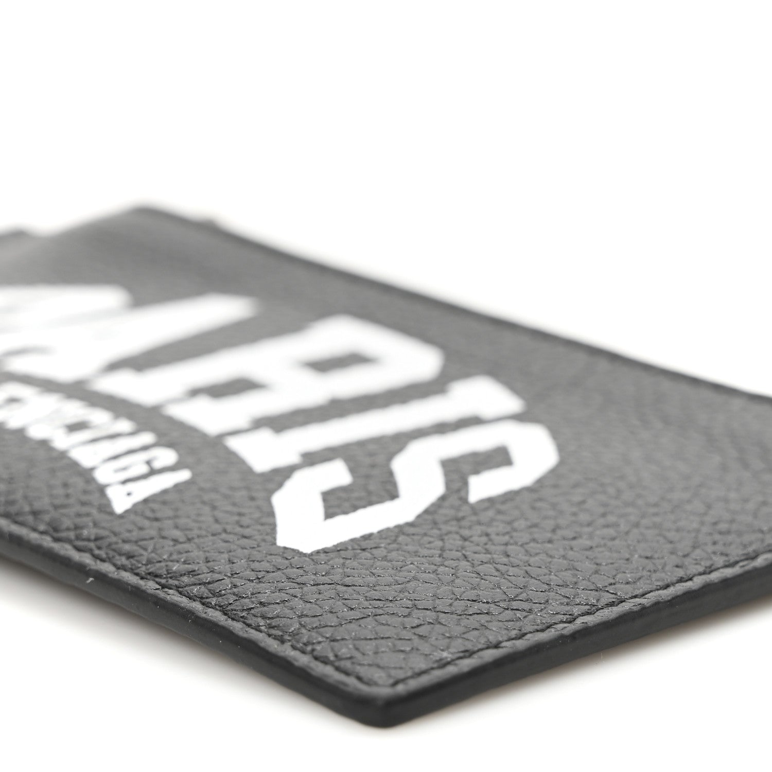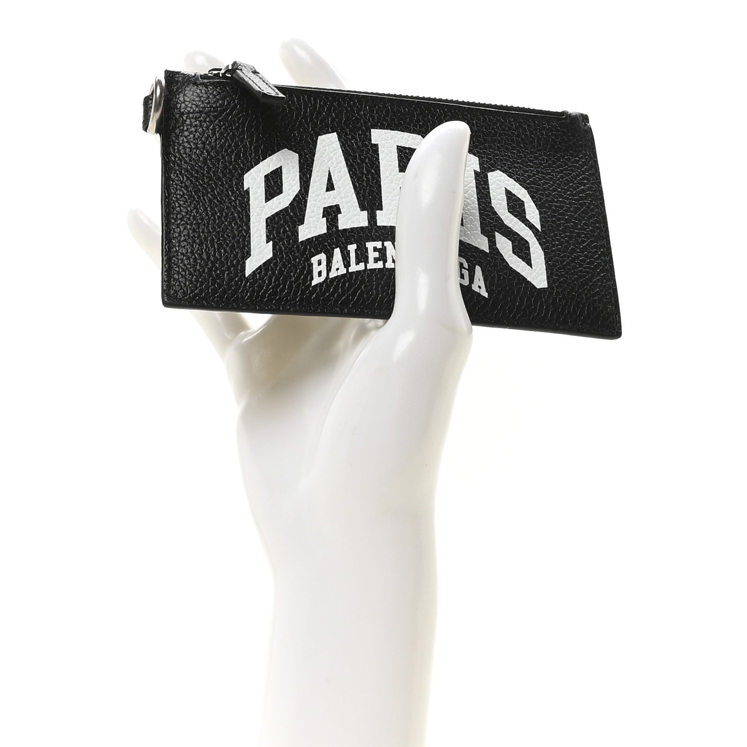 Grained Calfskin Paris Logo Cash Coin Card Holder On Keychain Black