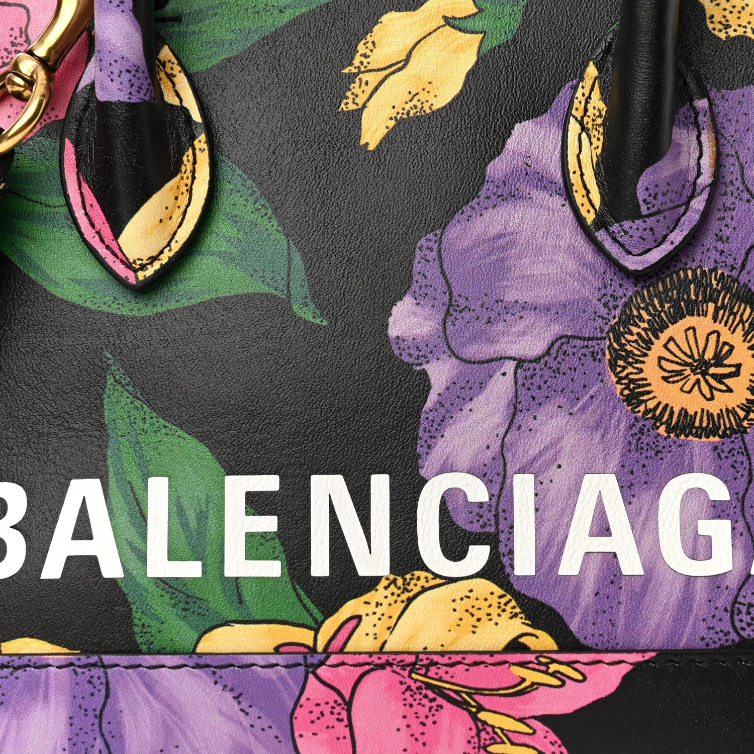 Smooth Calfskin Lush Floral Print XXS Ville Top Handle Bag Black Multicolor