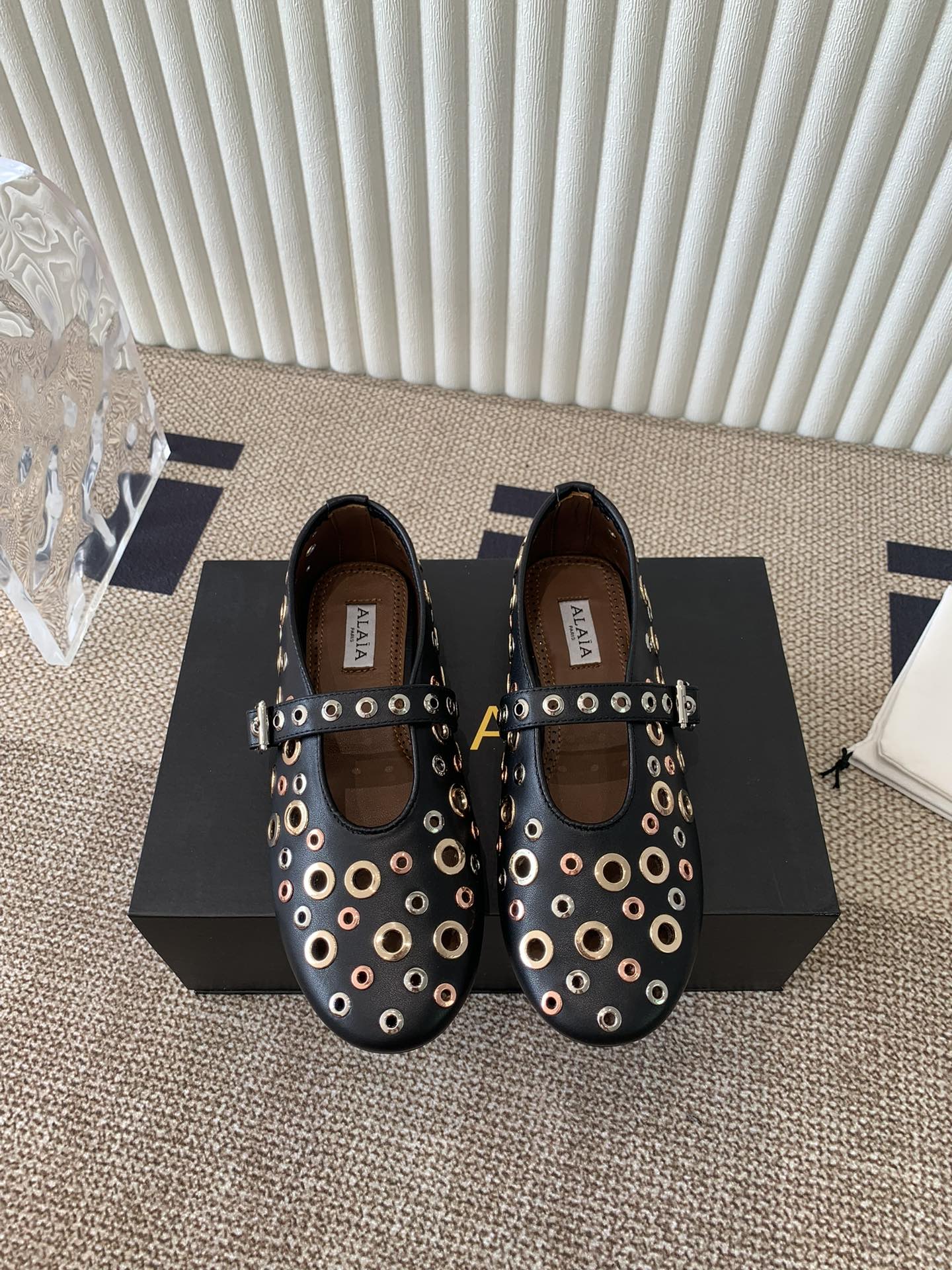 ballet flat in eyelet black lambskin