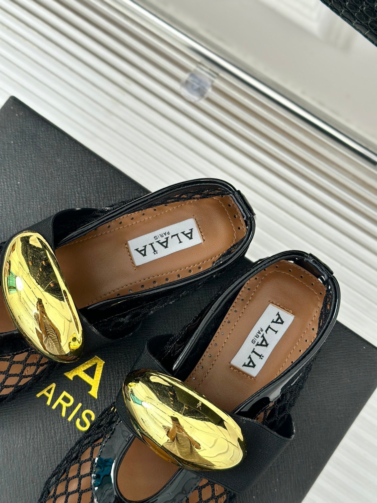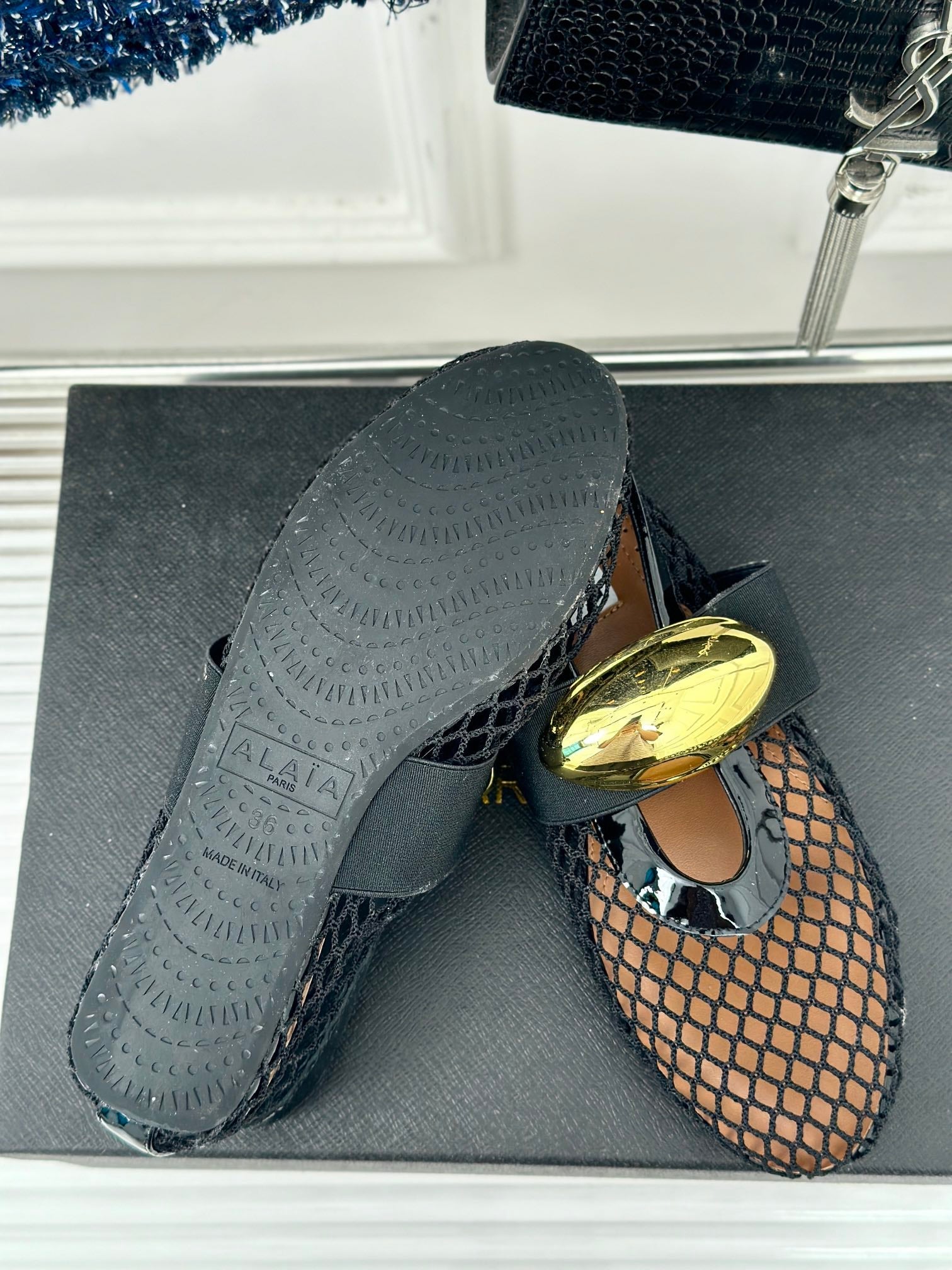 ballet flat jewel fishnet black lambskin