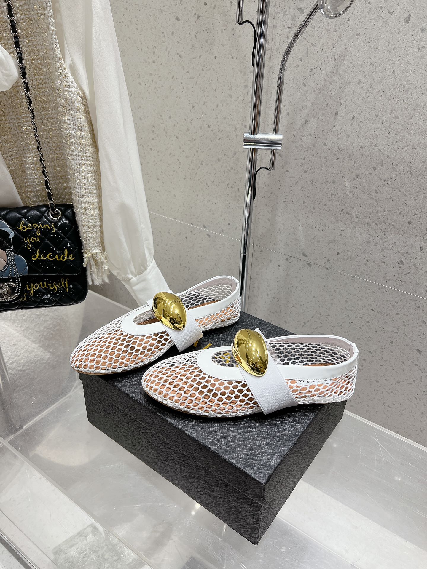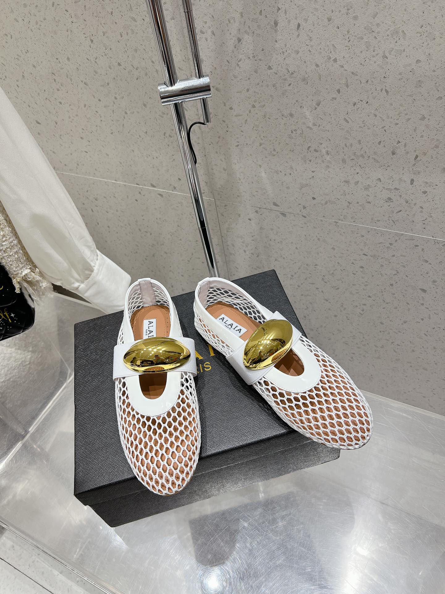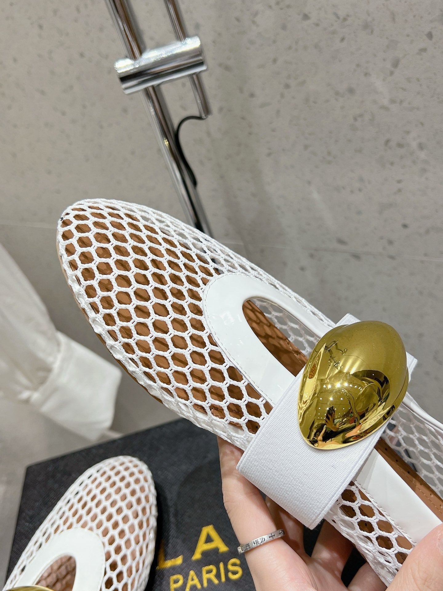 ballet flat jewel fishnet white lambskin
