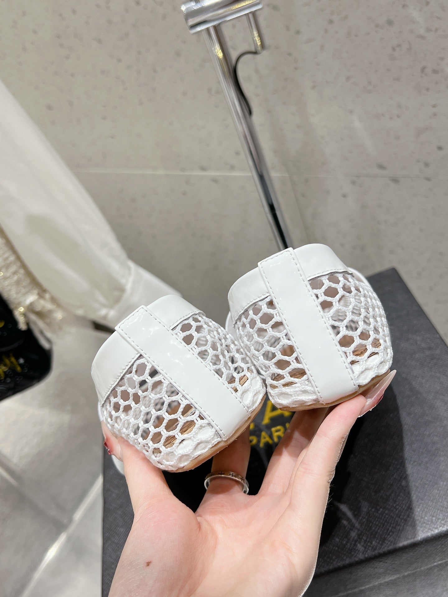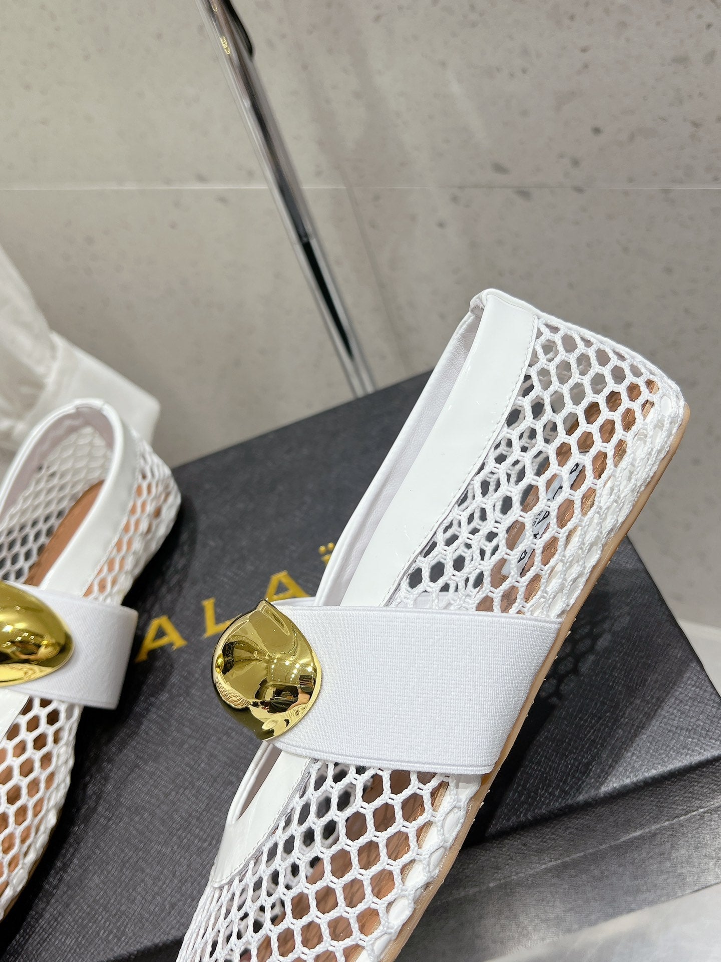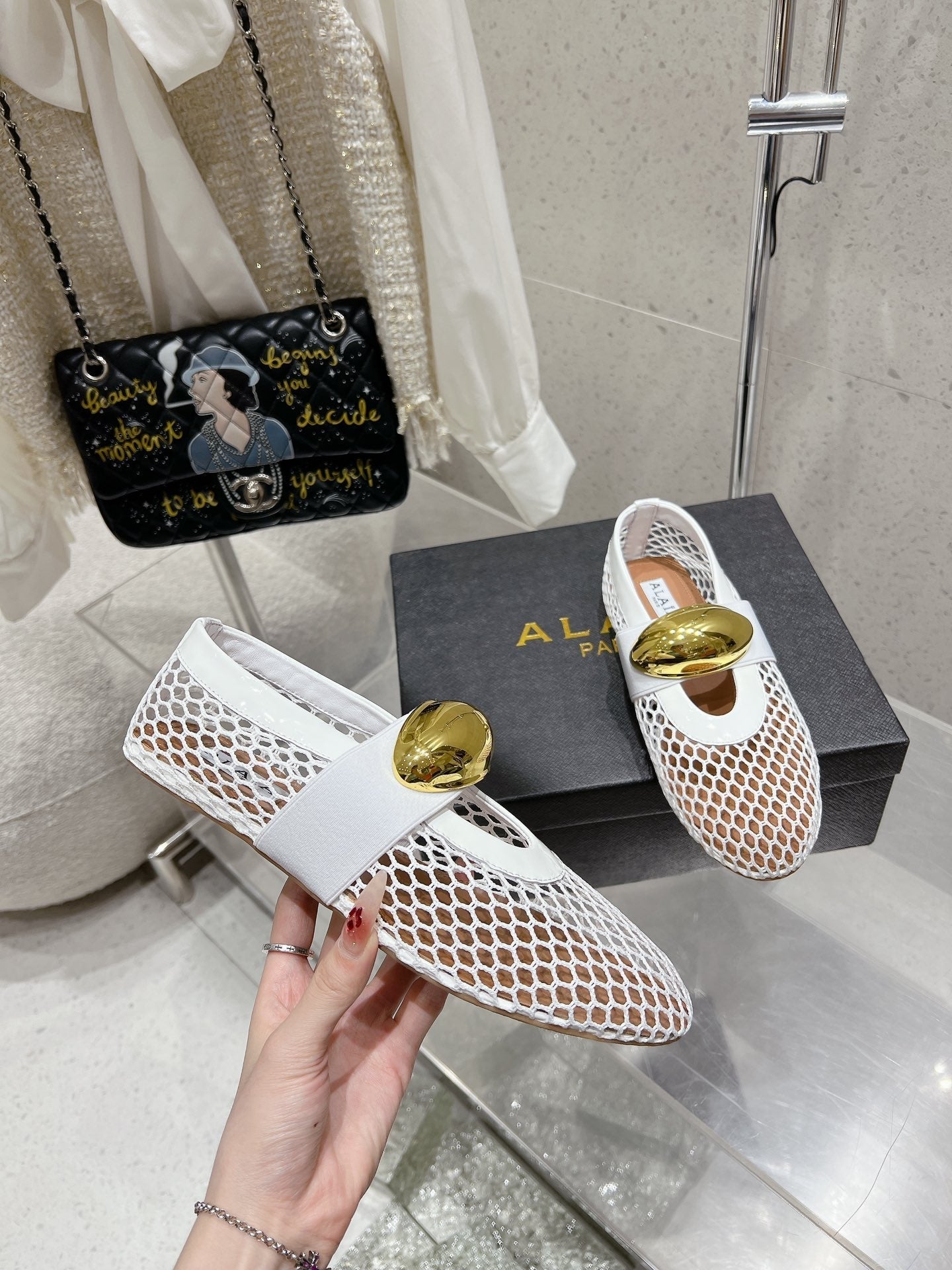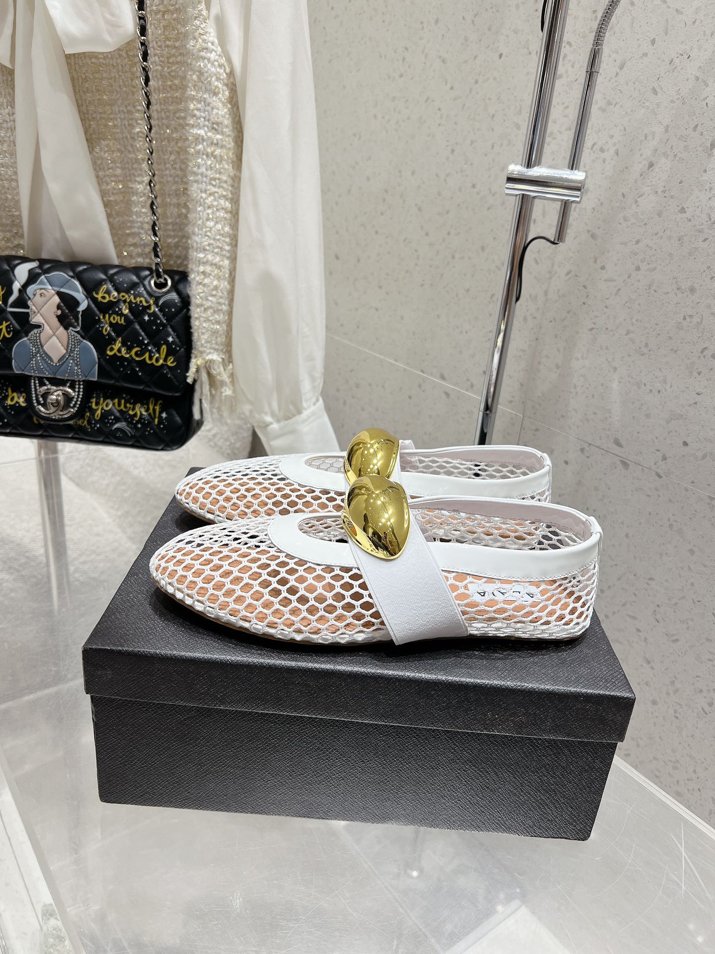 ballet flat jewel fishnet white lambskin