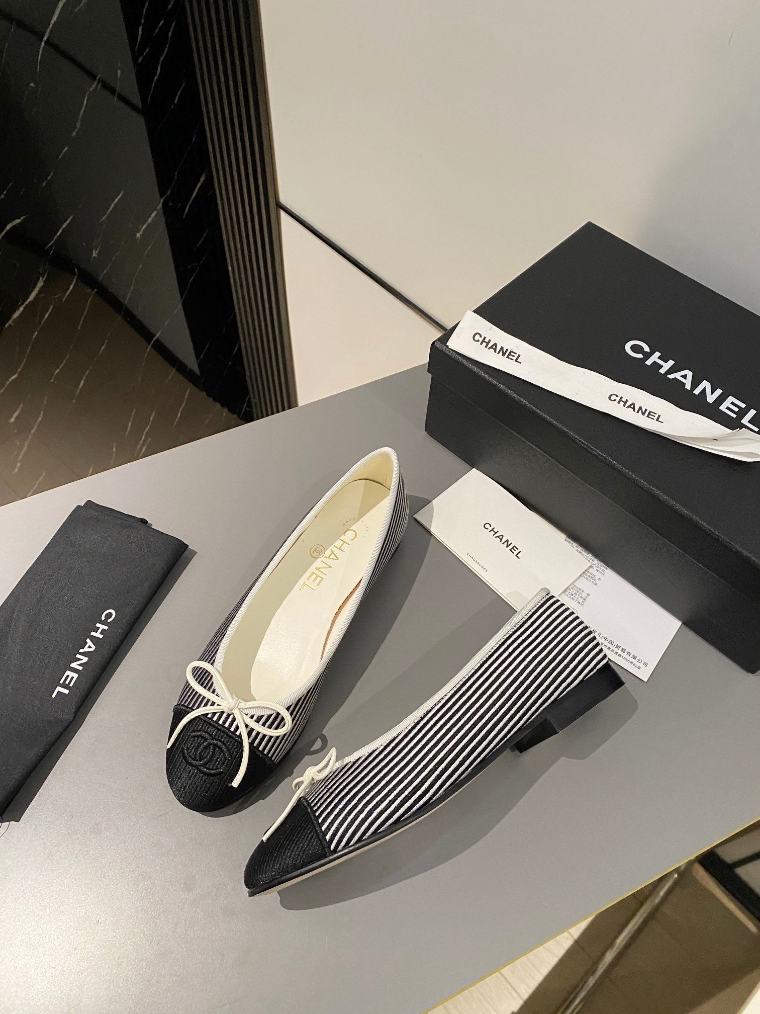 ballet flat white black embroidered fabric