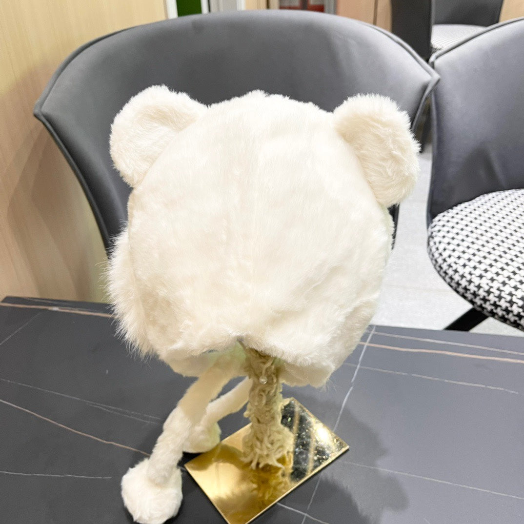 • Women's Hat with plush material and pom-pom design, featuring cute bunny ears, ideal for winter.