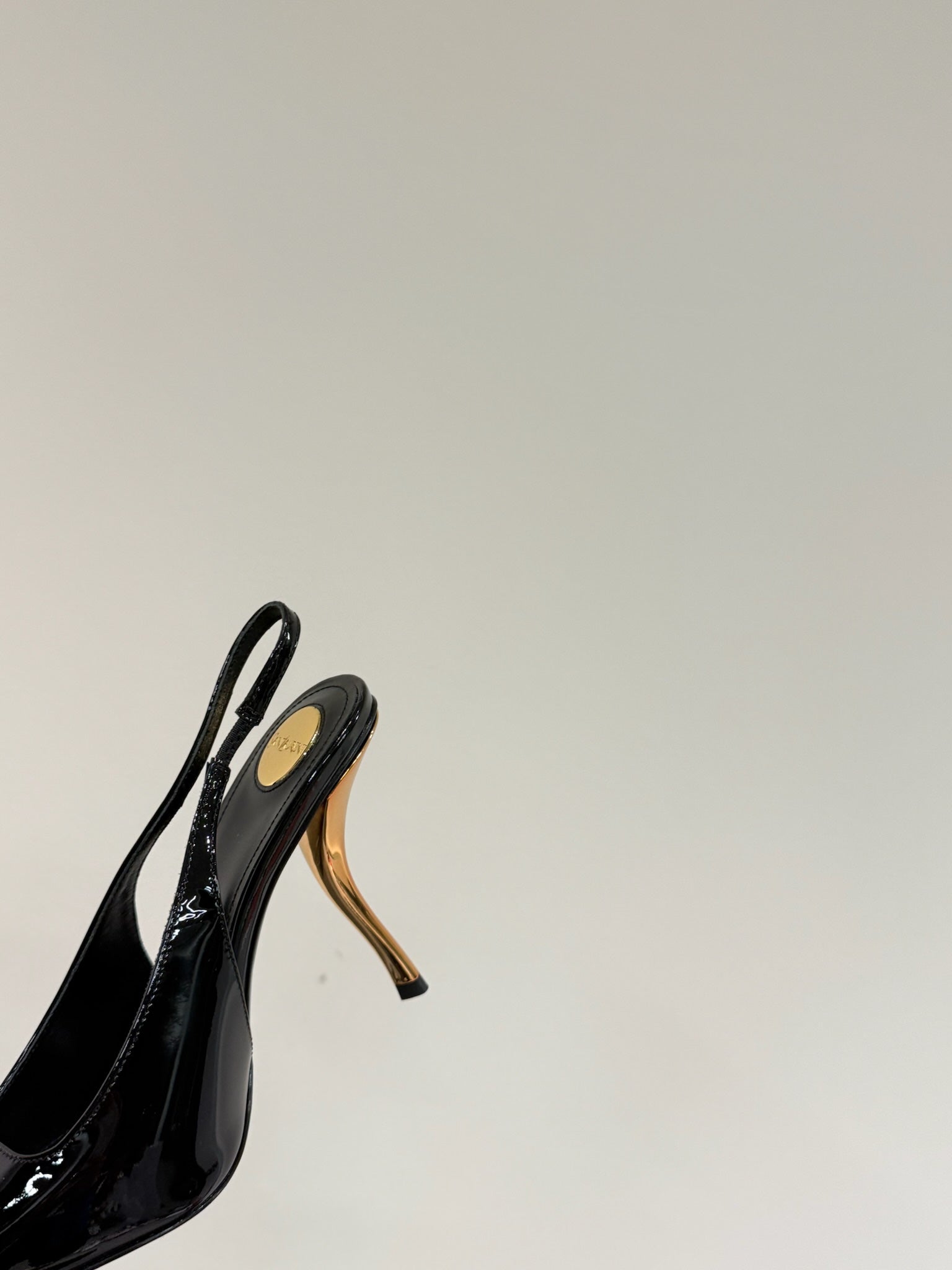 BLACK GEM-STUDDED SLINGBACK PUMPS IN BLACK PATENT CALFSKIN