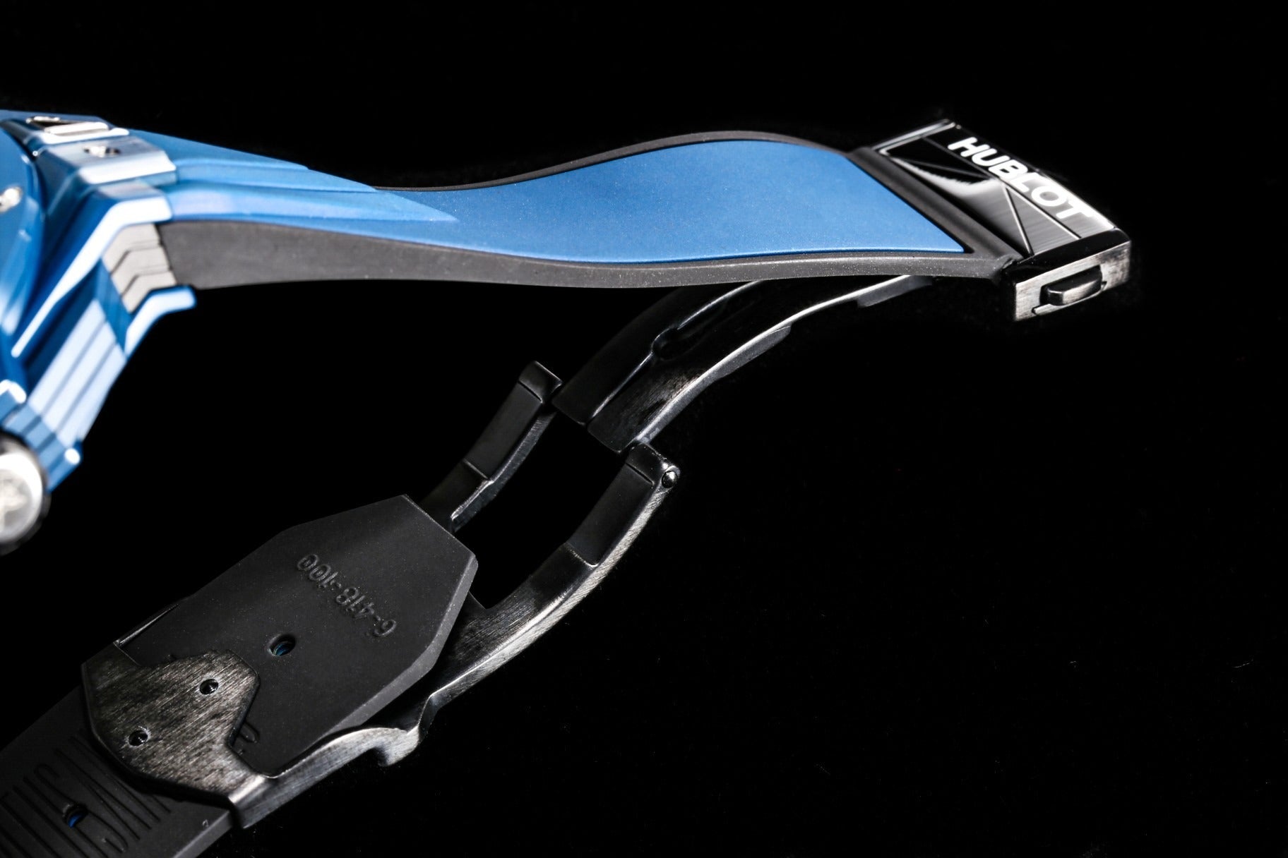 The imported fluororubber strap is paired with Hublot's user-friendly folding clasp, ensuring superior comfort for the wearer.