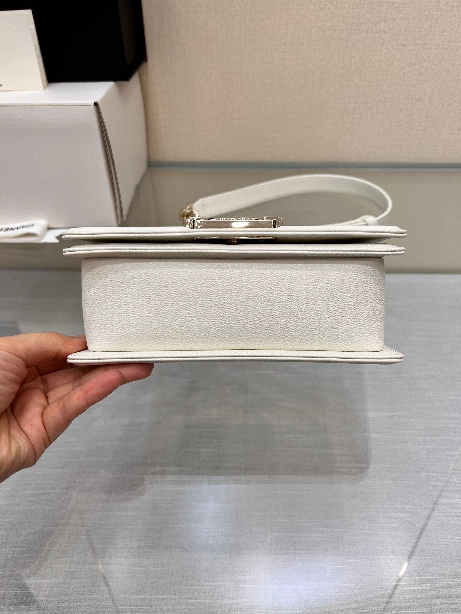 BOY BAG SMALL 20 WHITE CHEVRON CAVIAR GOLD HARDWARE