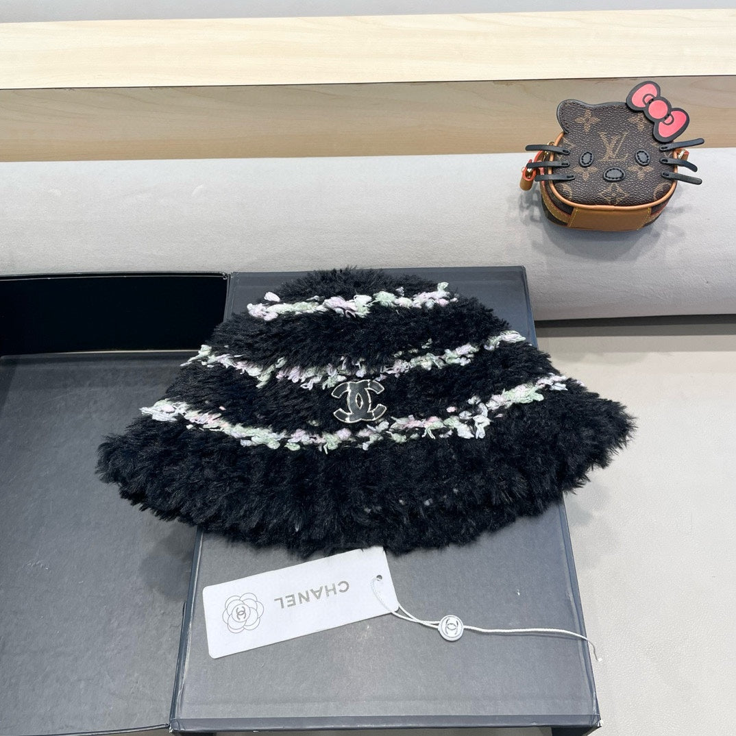 • Stylish plush bucket hat for women, suitable for autumn and winter, designed for warmth with a mixed-color look.