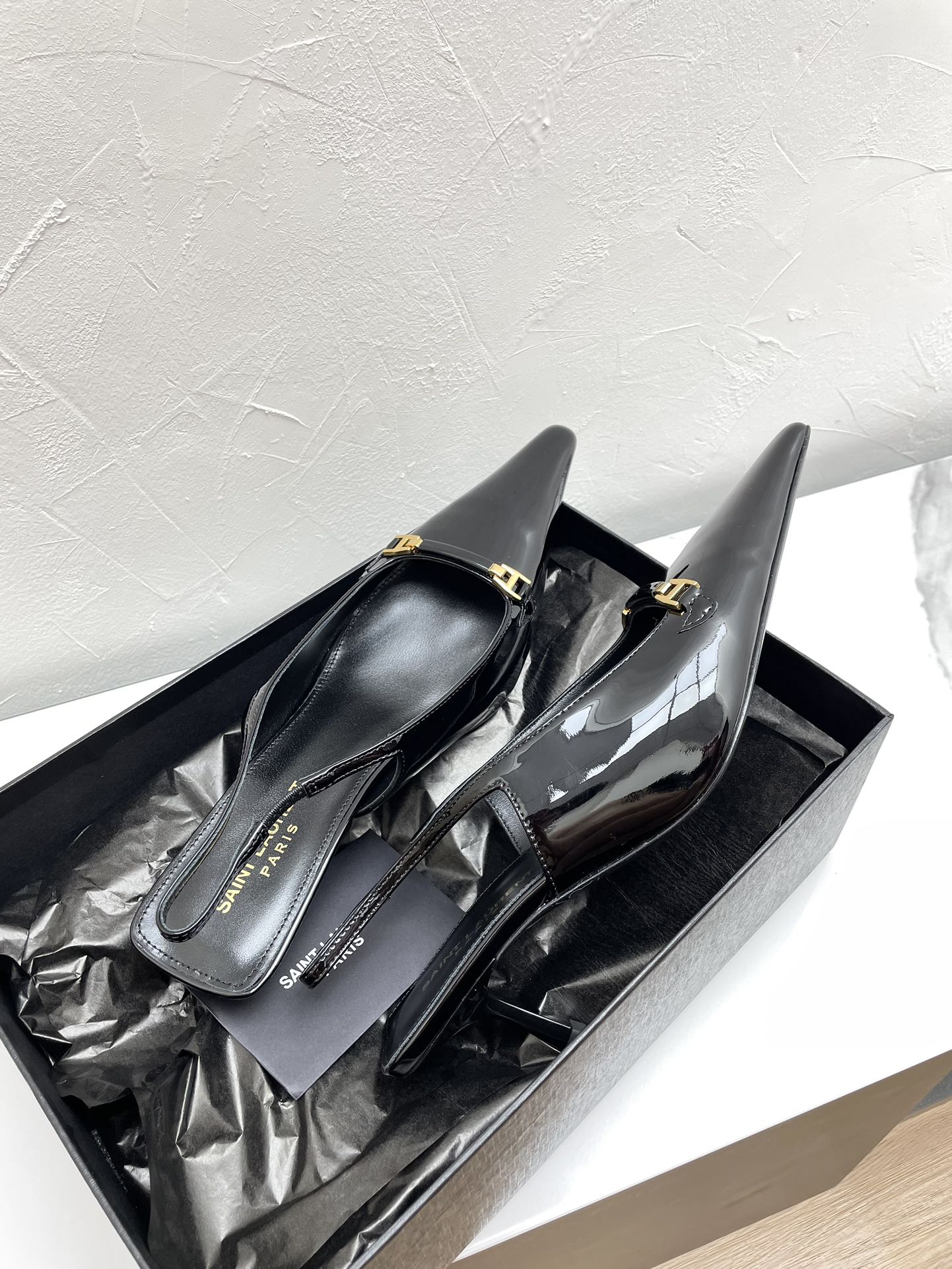 CARINE SLINGBACK PUMPS 45 IN PATENT BLACK LEATHER