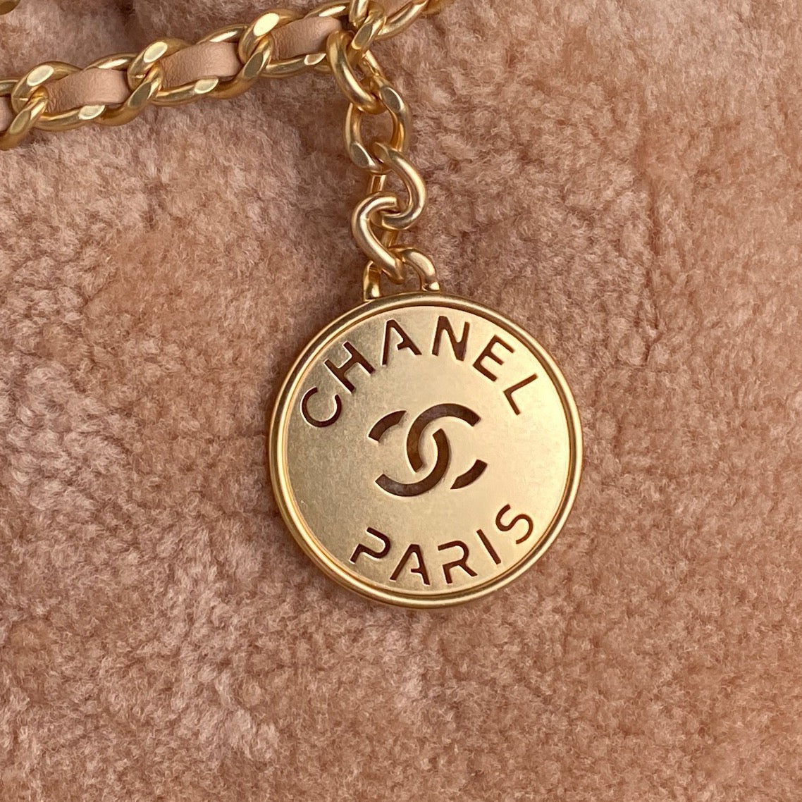 CC 24K Hobo 22 Bag 20cm Brown Wool Fur