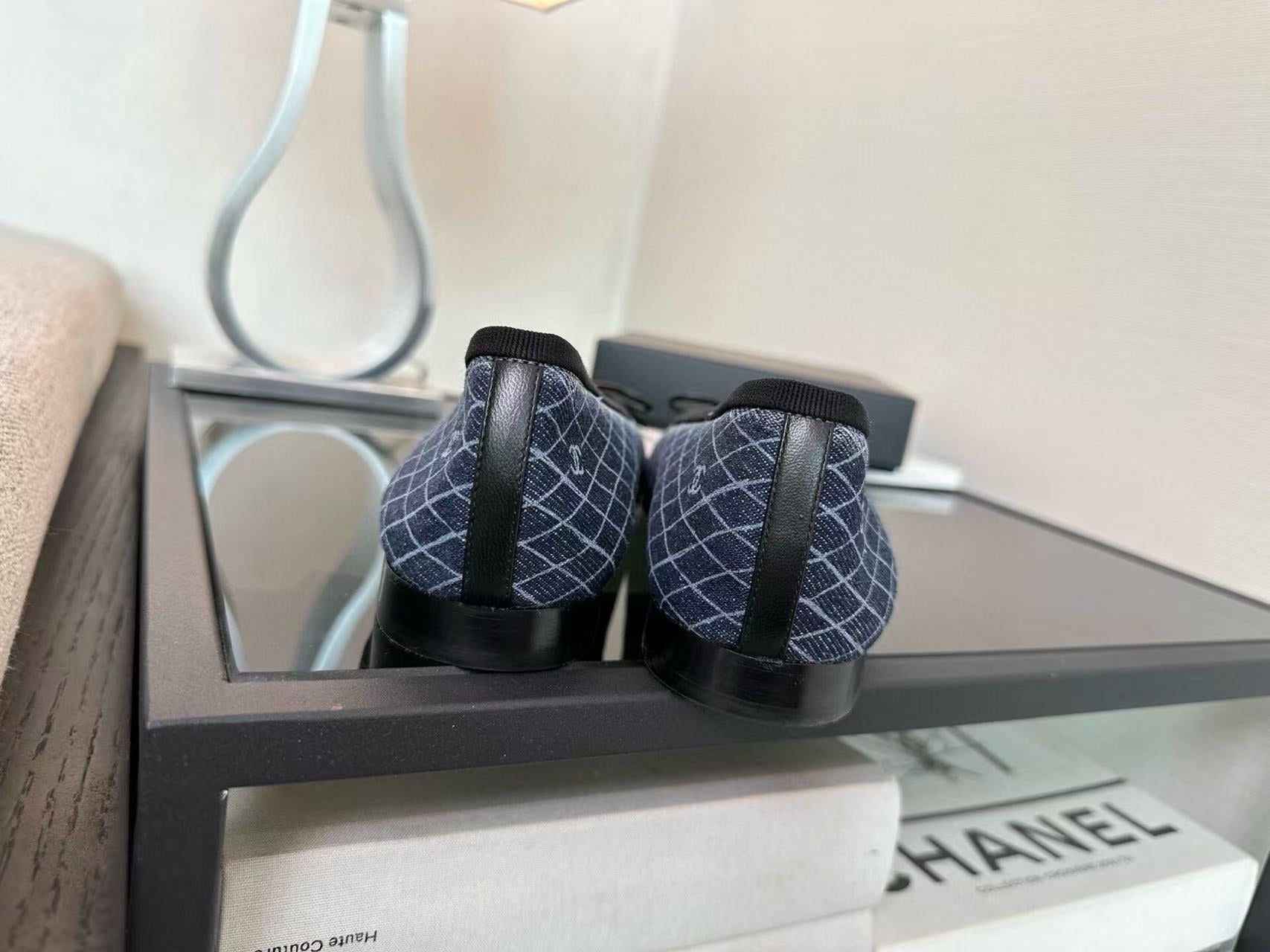 CC 25 Ballet Flat Dark Blue White Quilted Denim