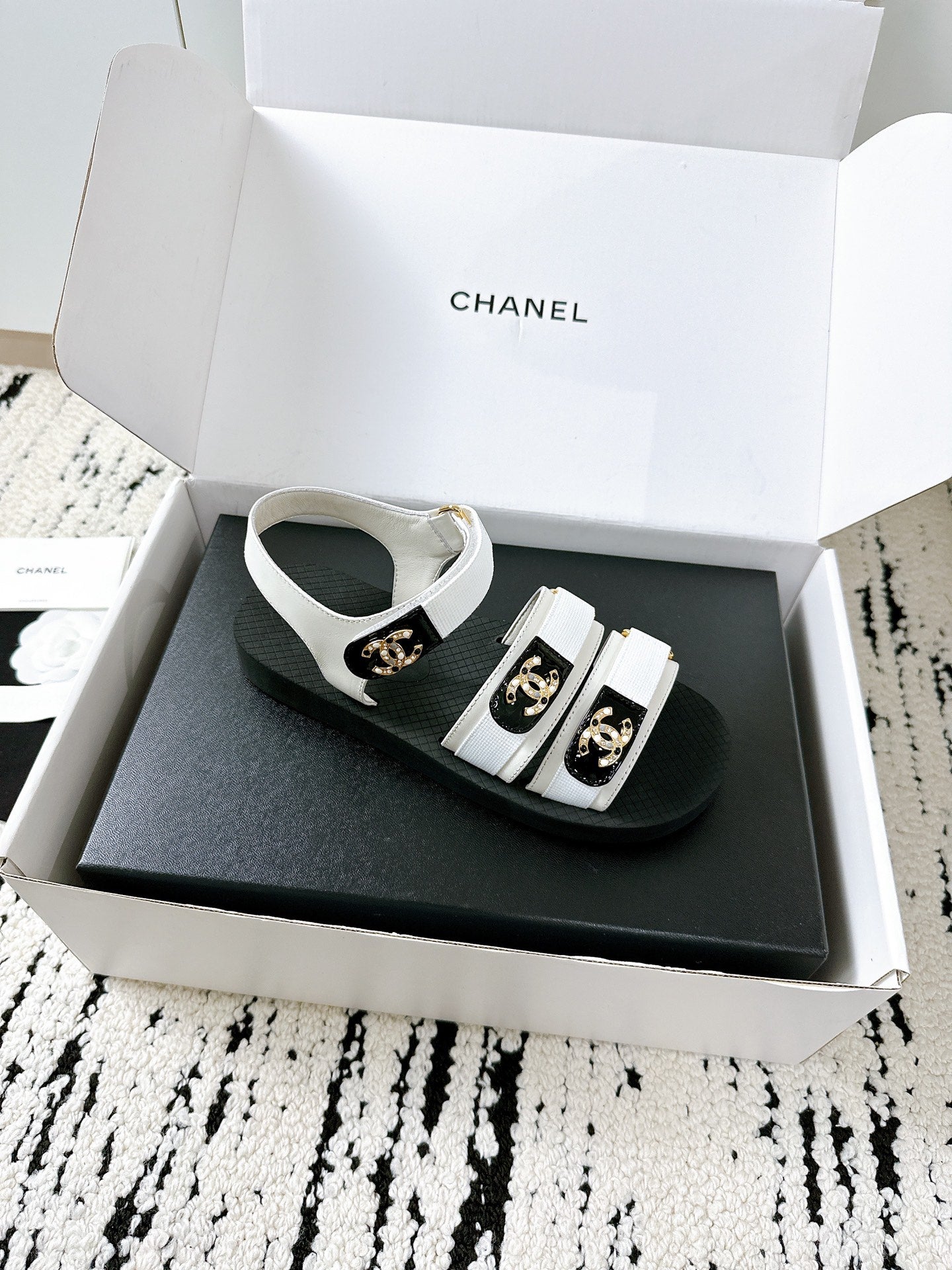 CC 25 Dad Sandals White Fabric Leather 300170
