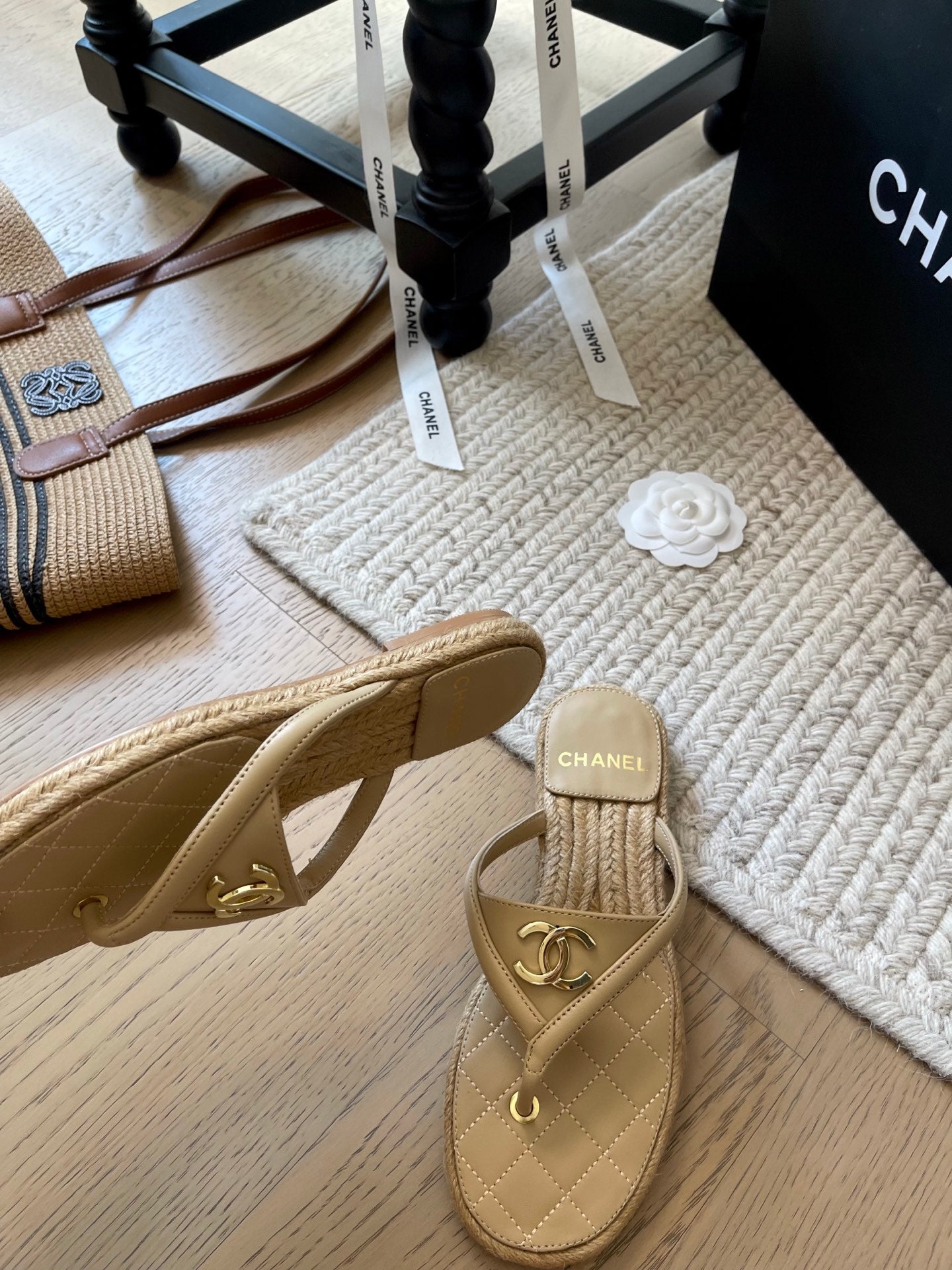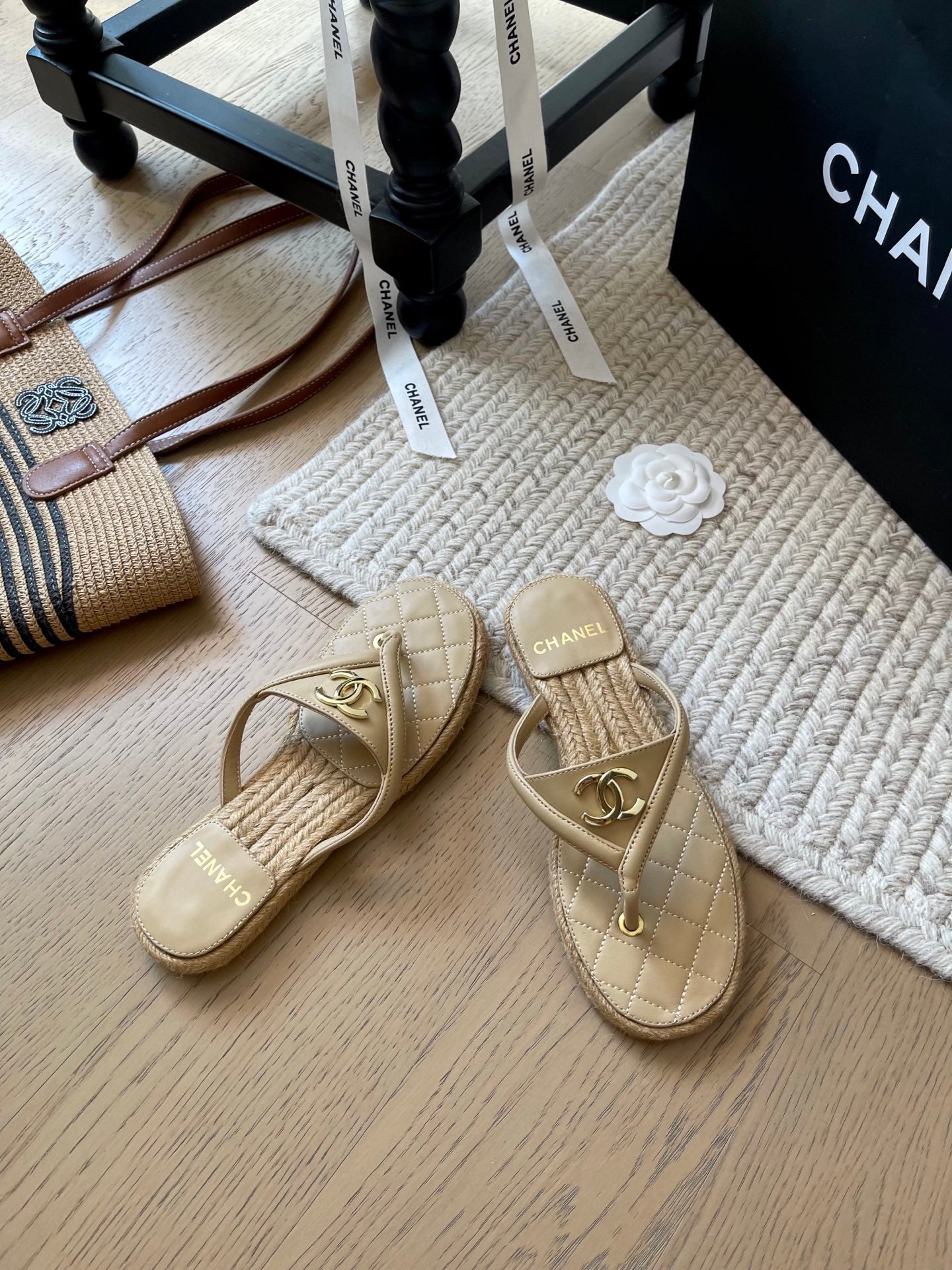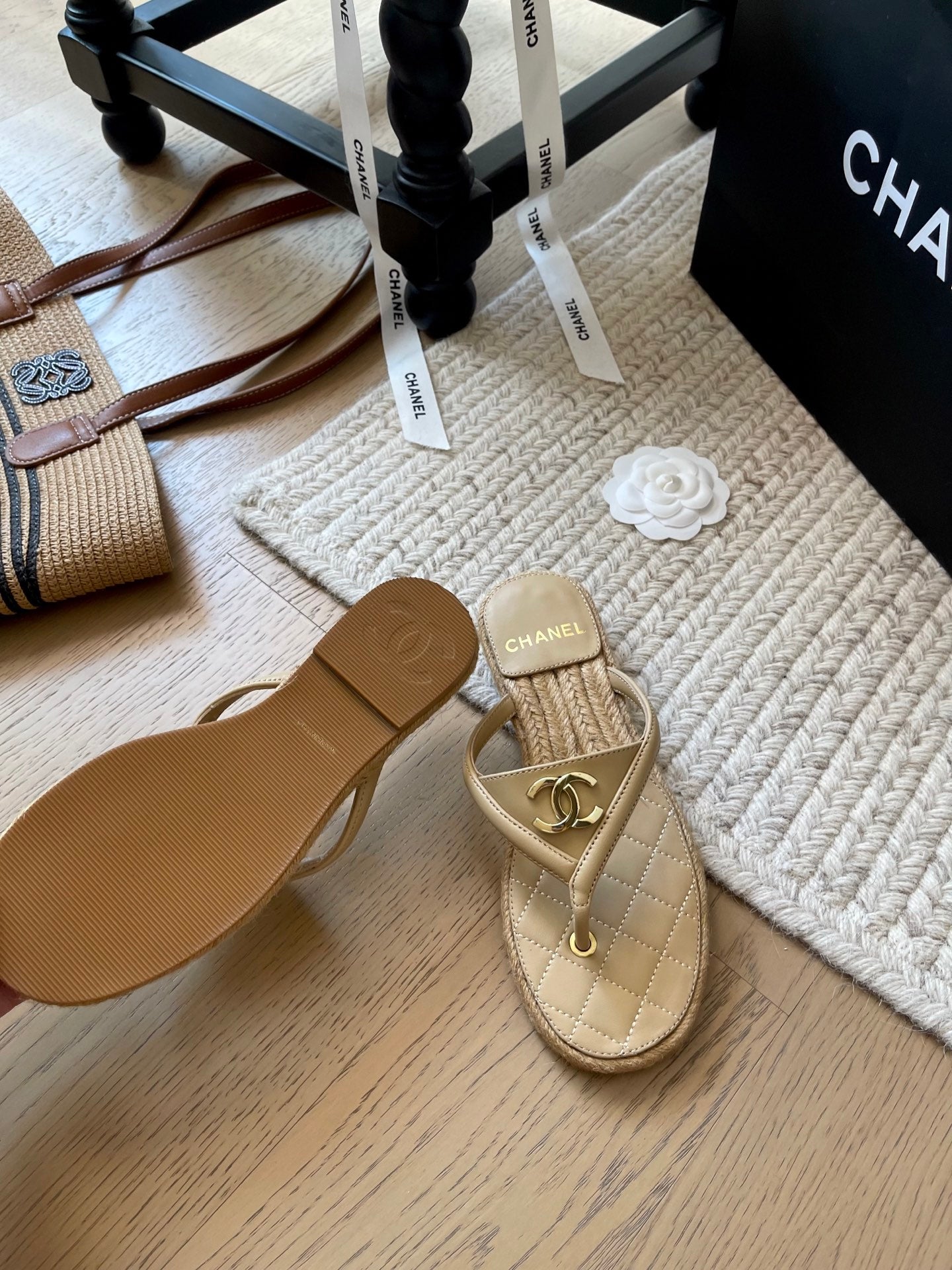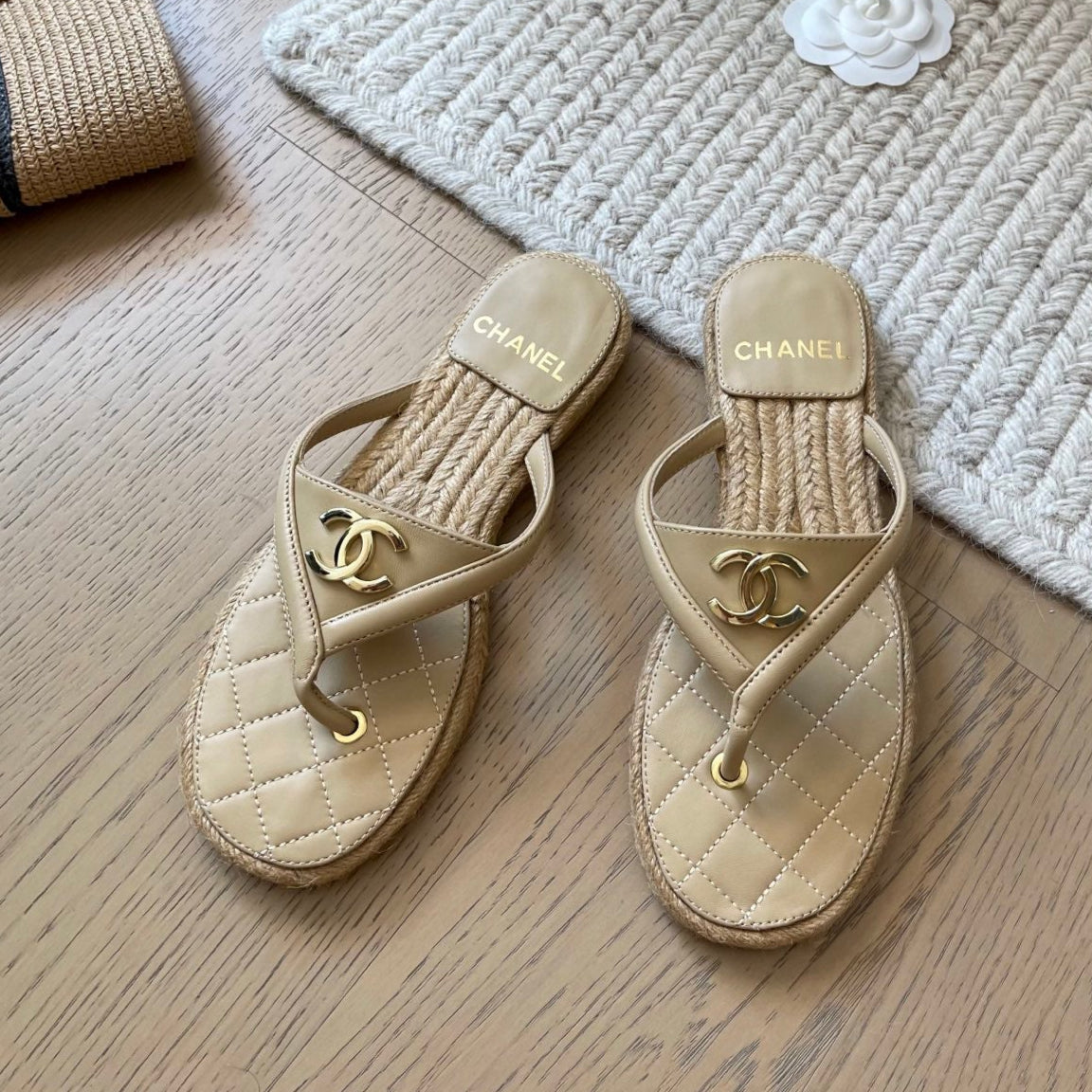 CC 25 Flip Flop Sandals Beige Calfskin Espadrilles