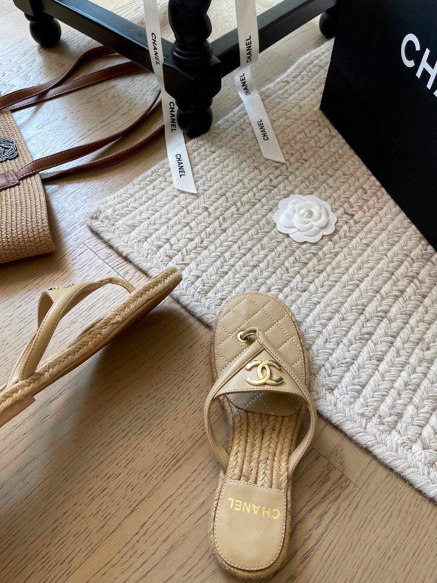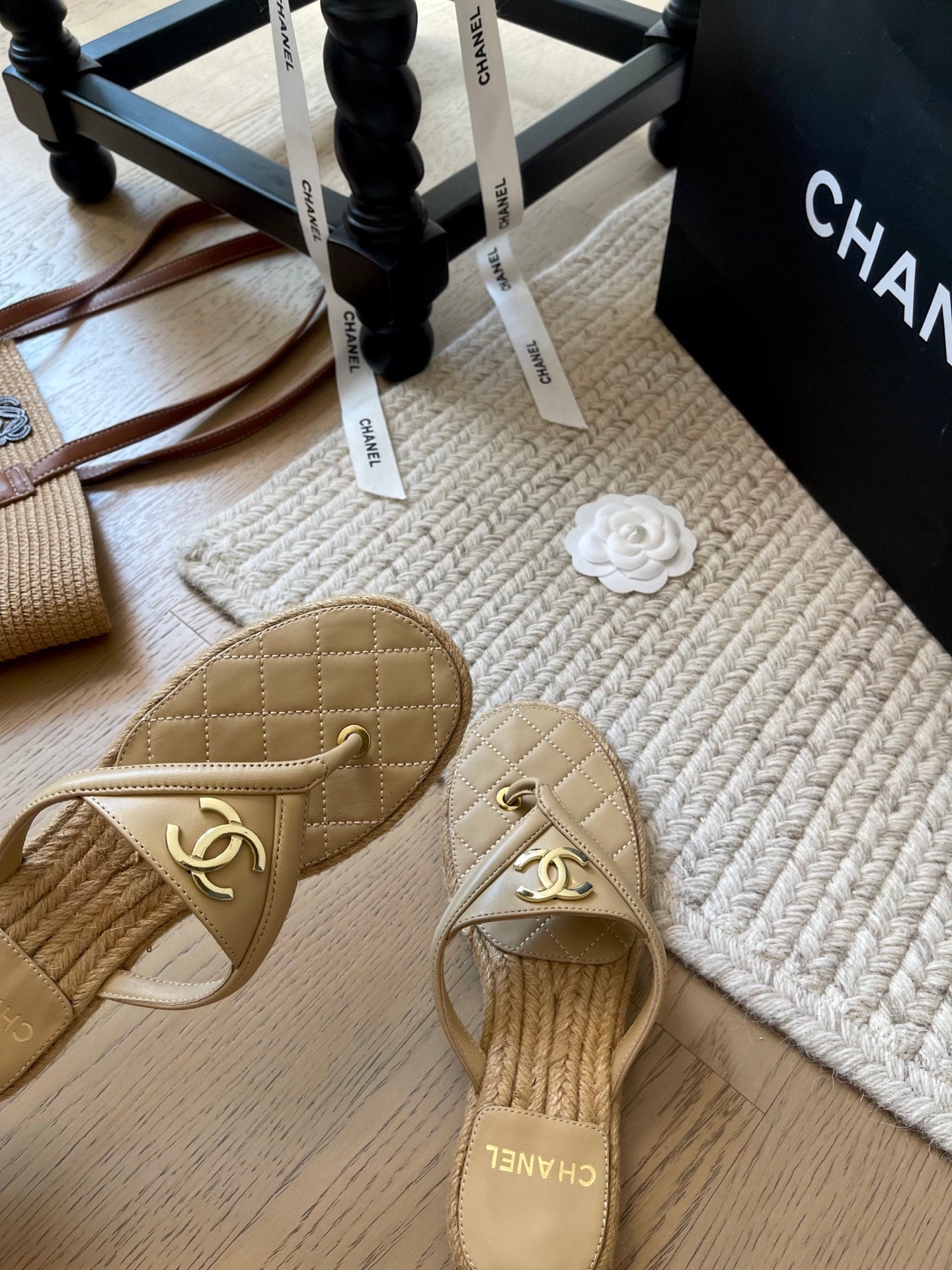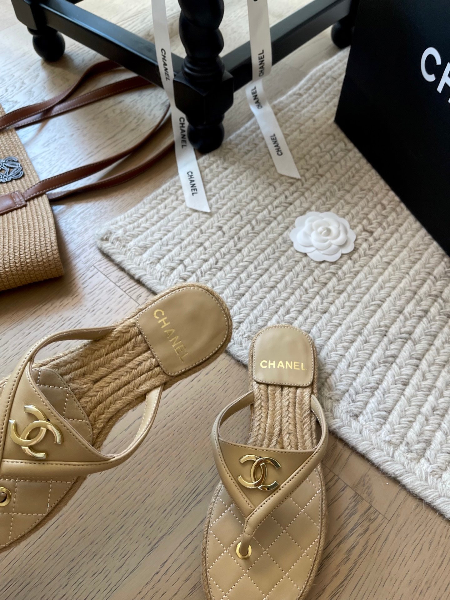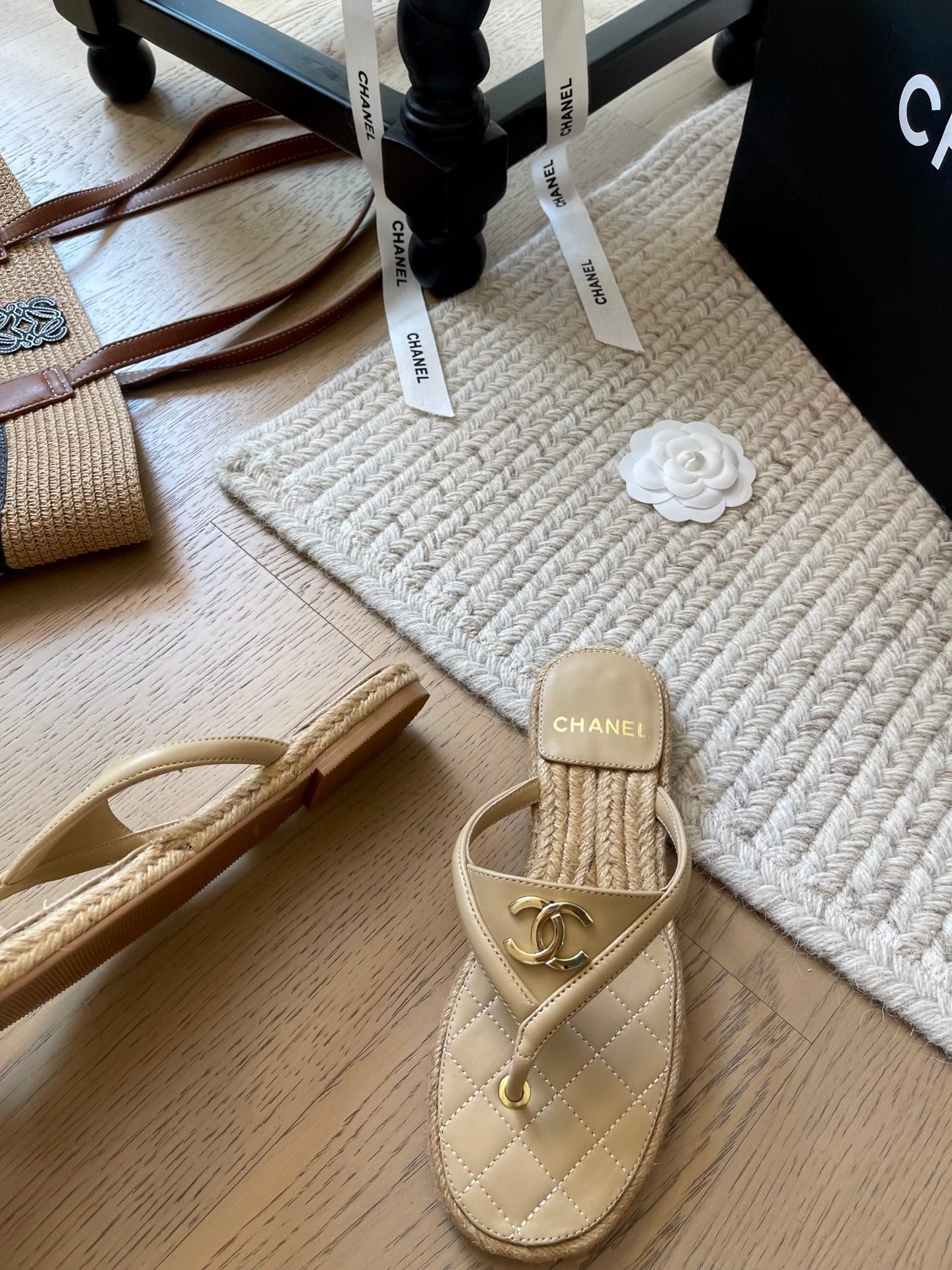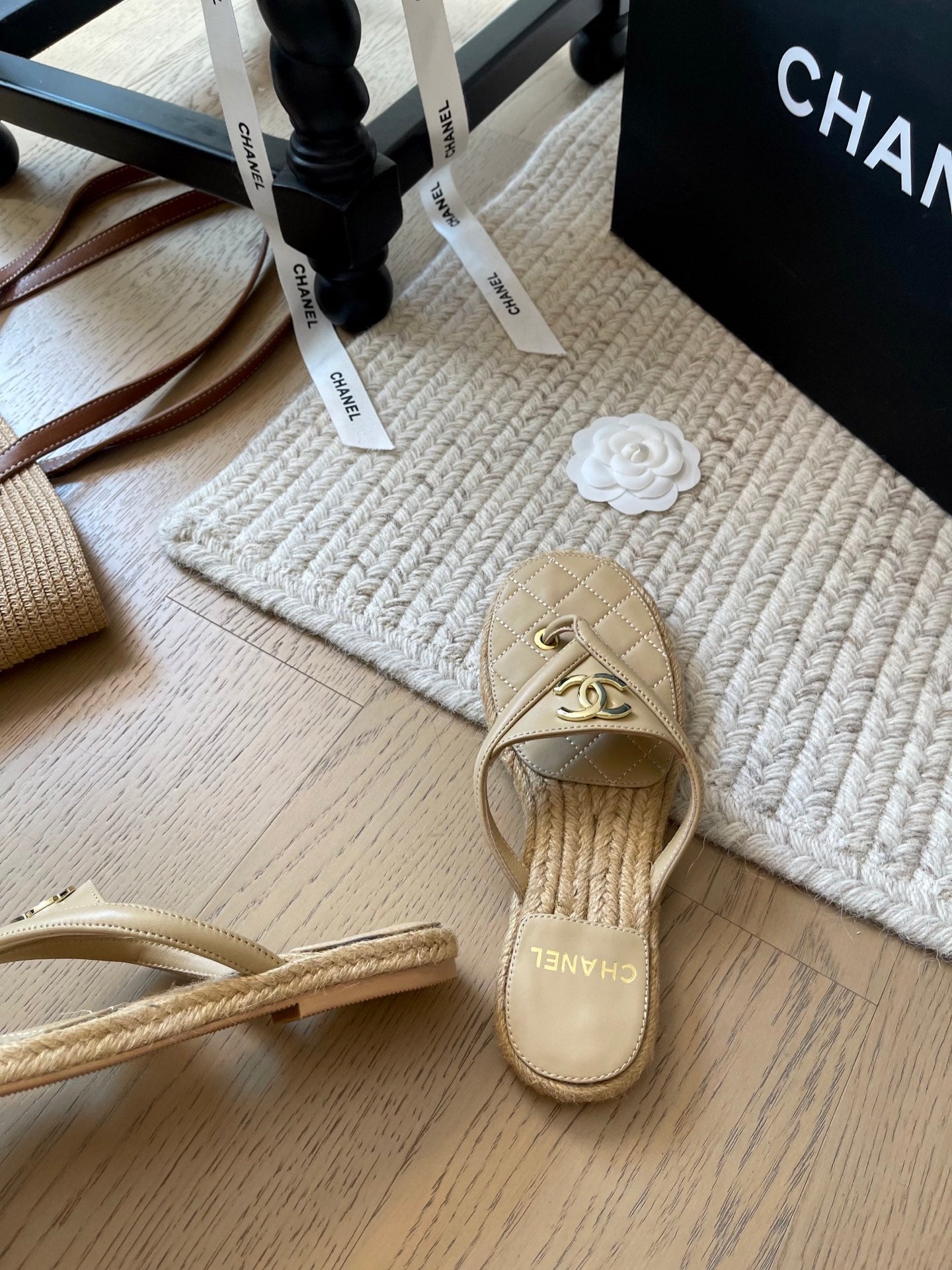 CC 25 Flip Flop Sandals Beige Calfskin Espadrilles