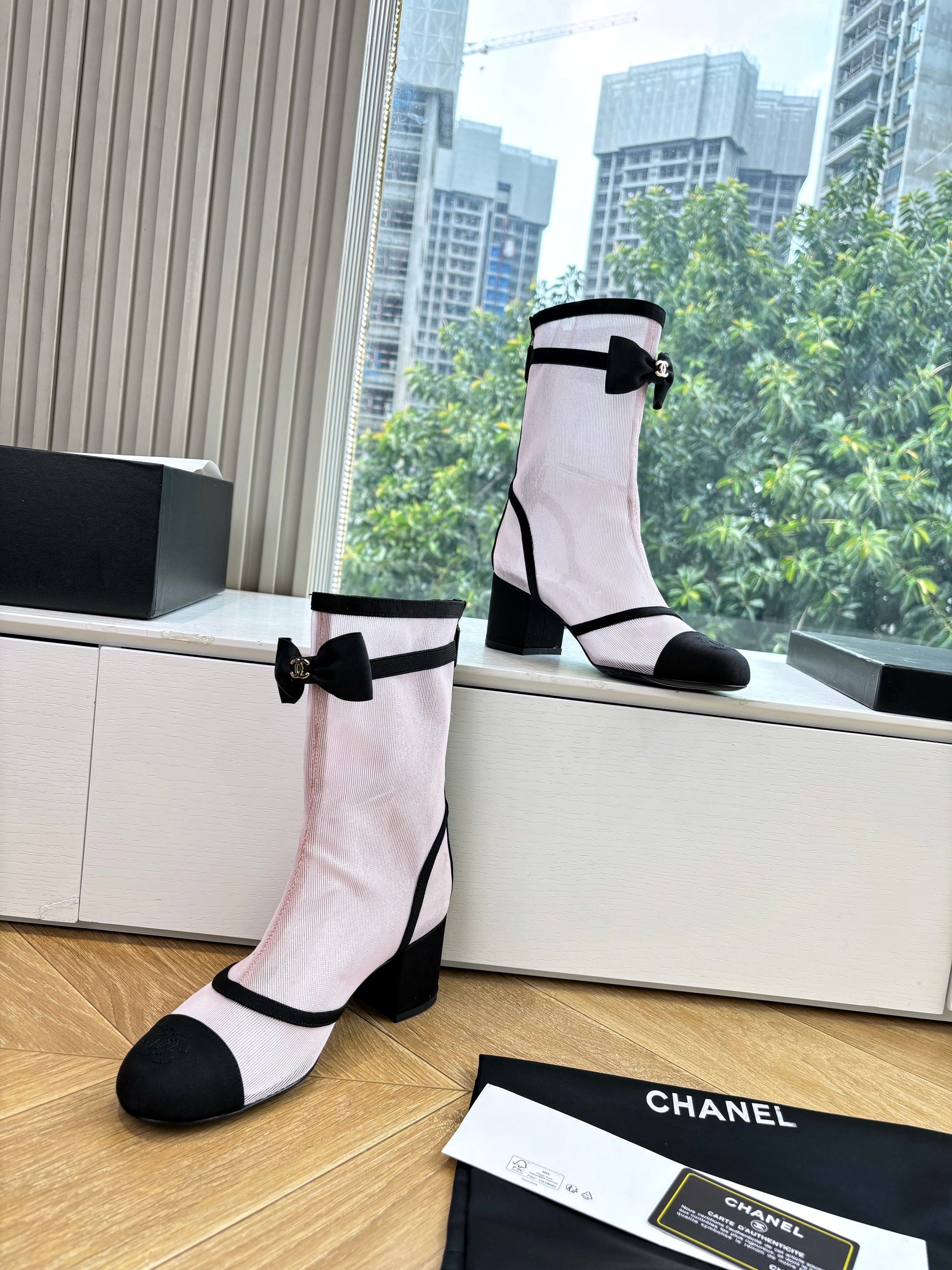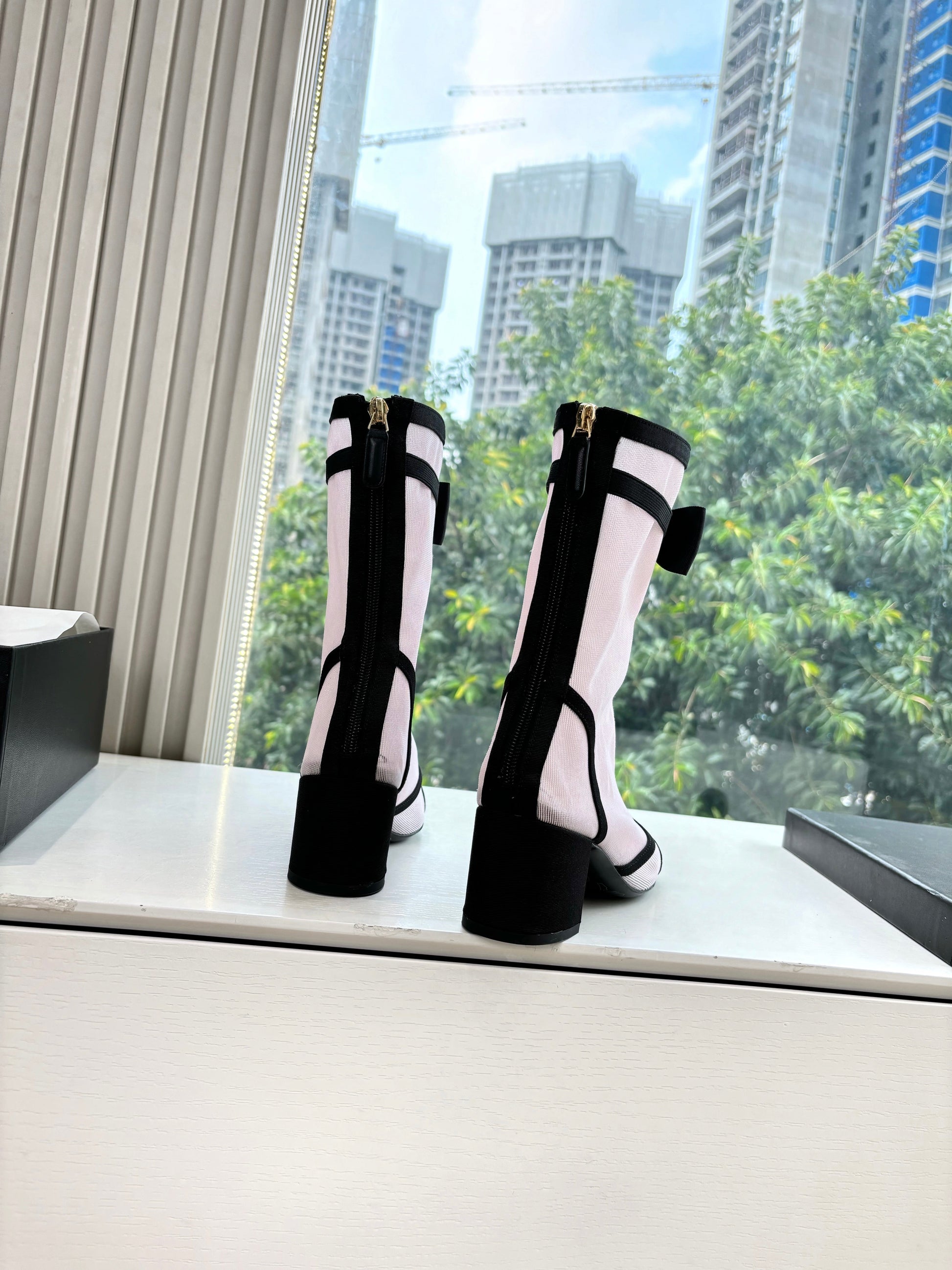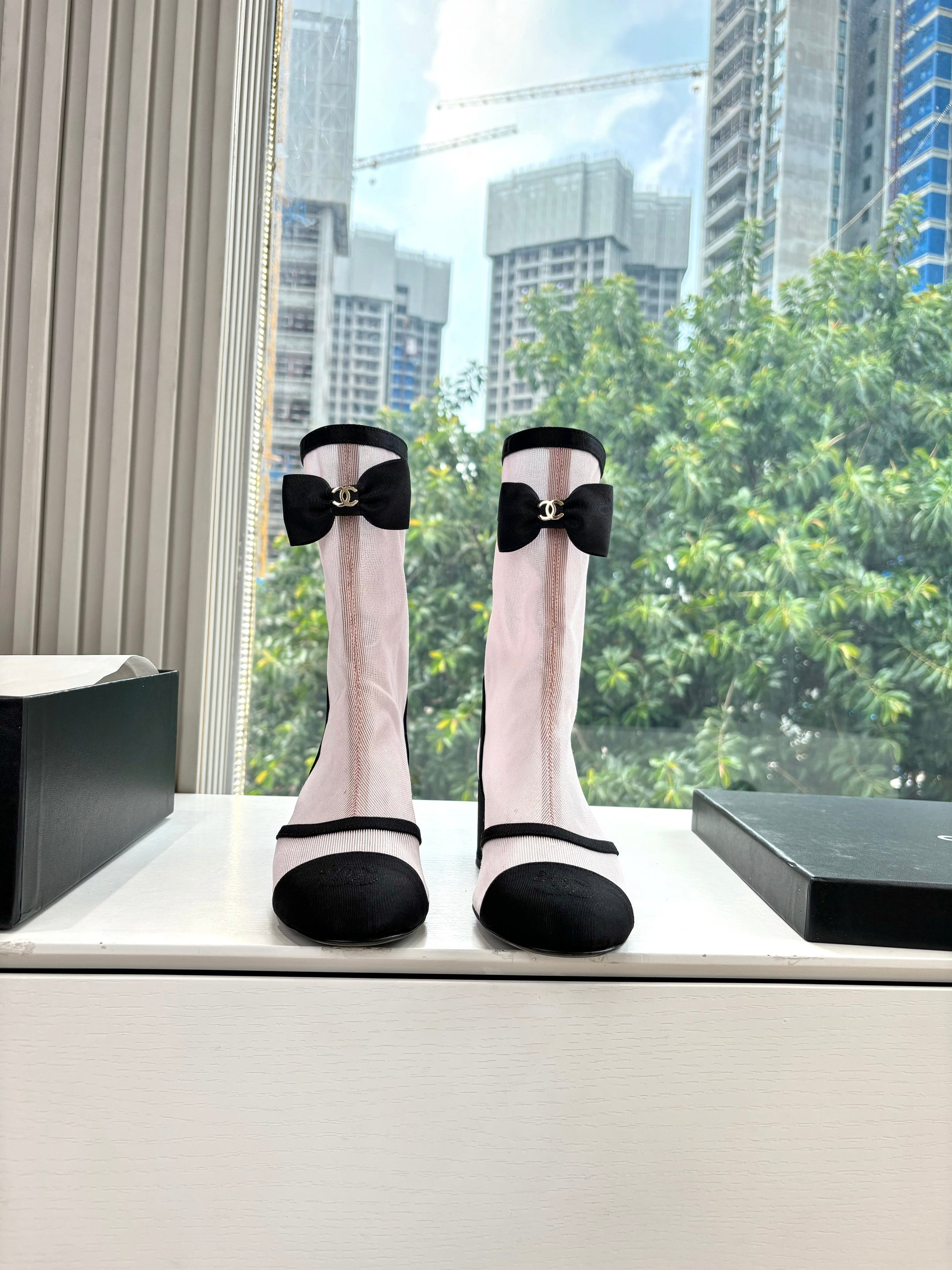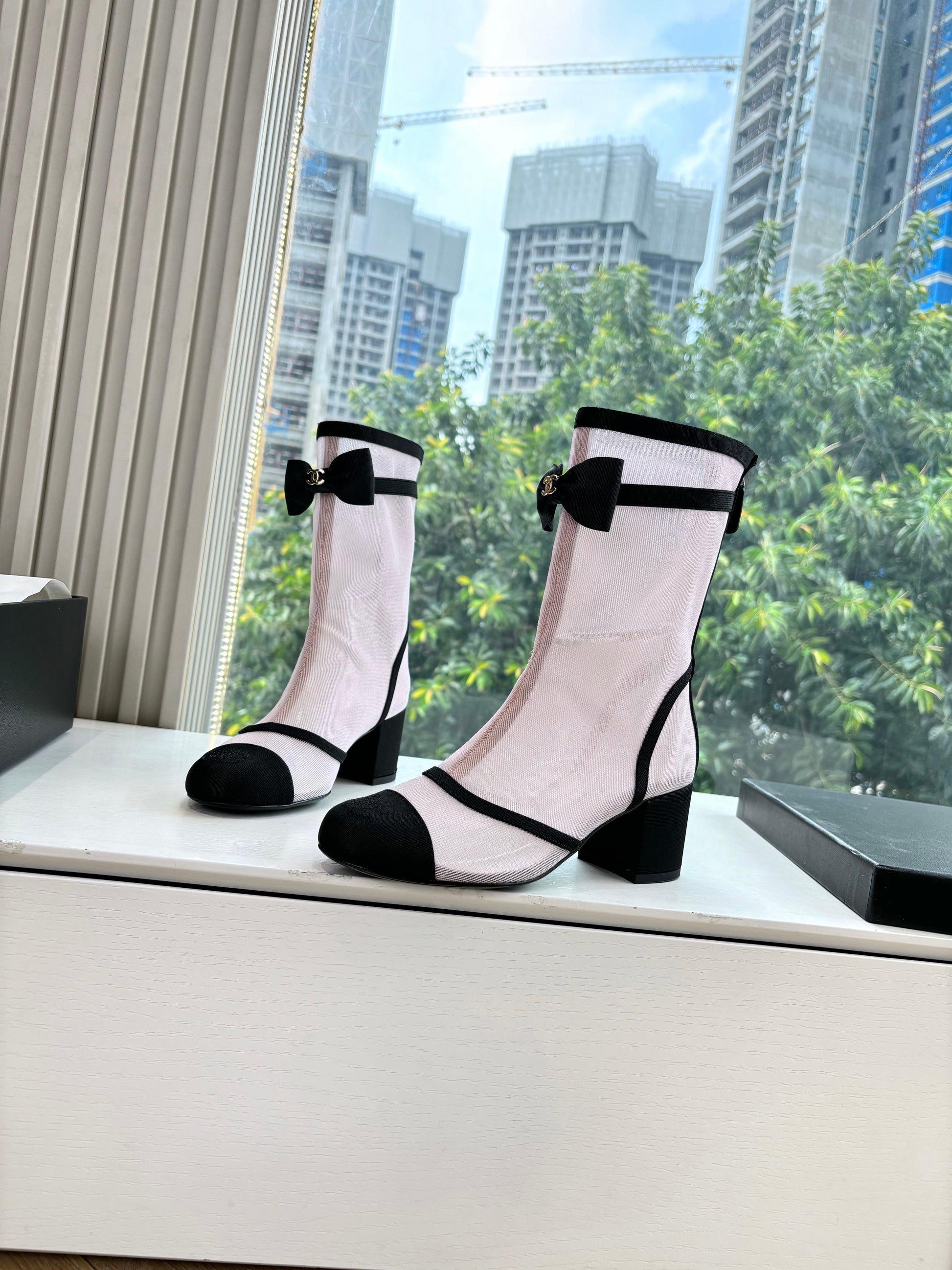 CC 25 Short Boot Light Pink Mesh Black Bow 430321
