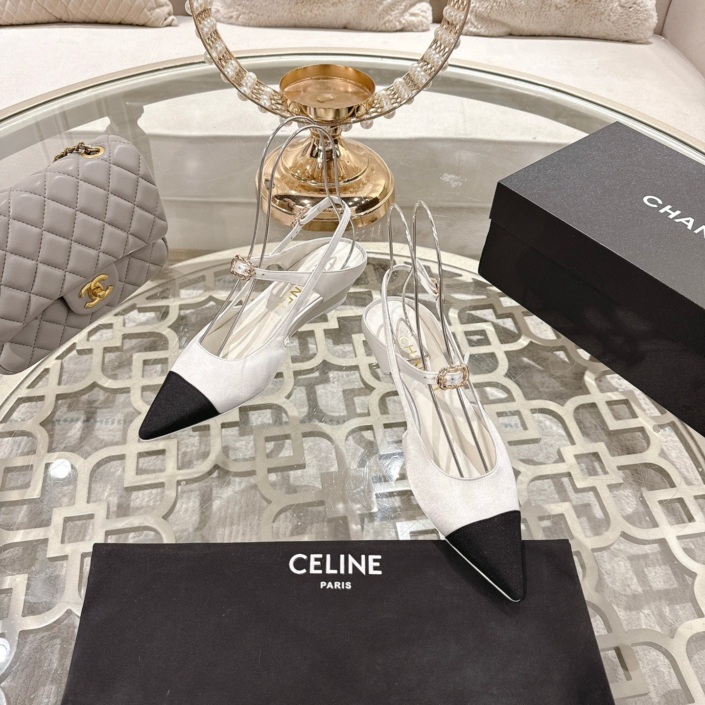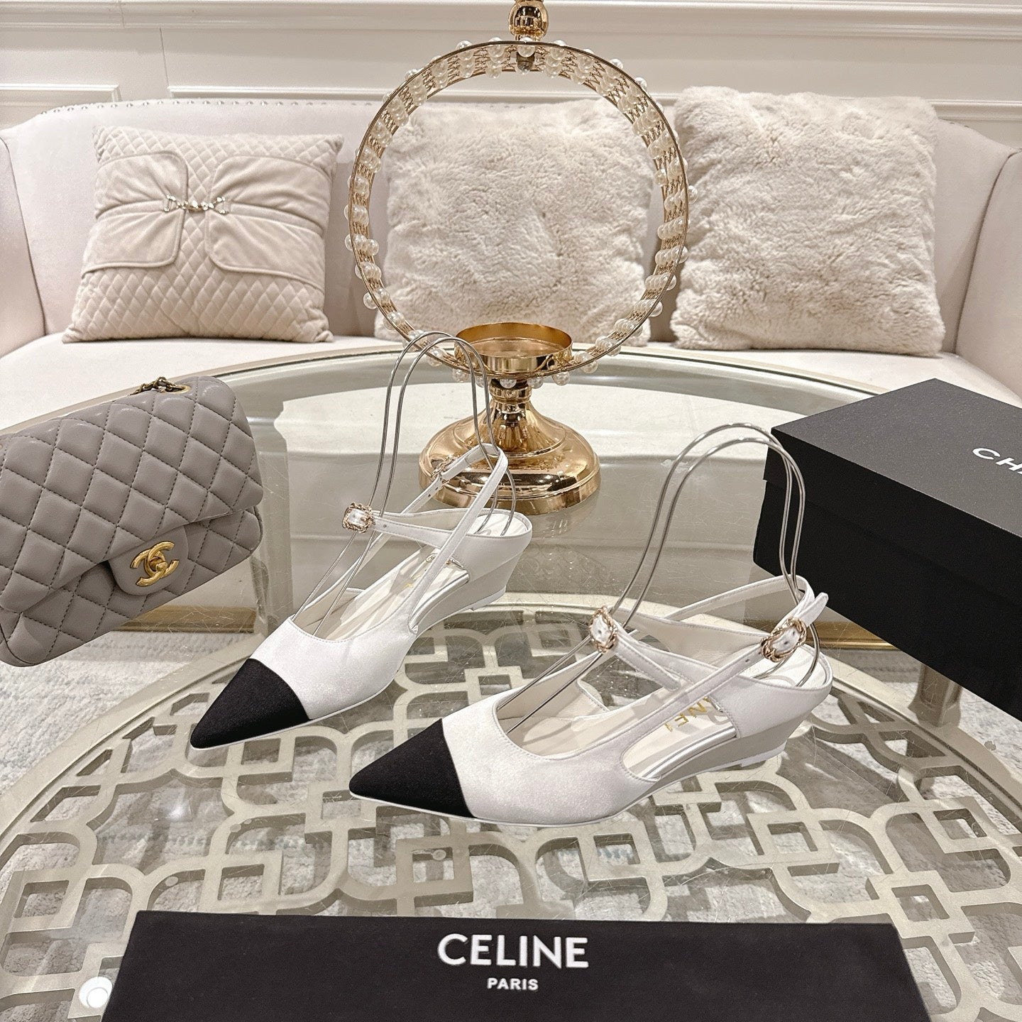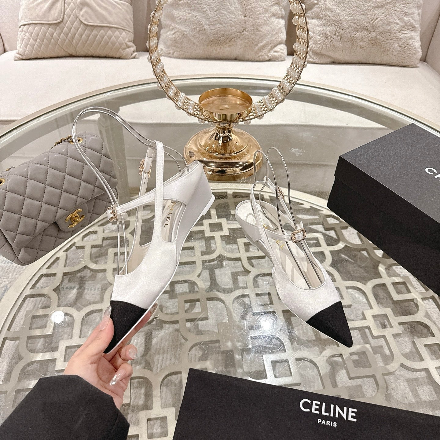CC 25 Slingback Heel White Silk and Sheepskin 268919