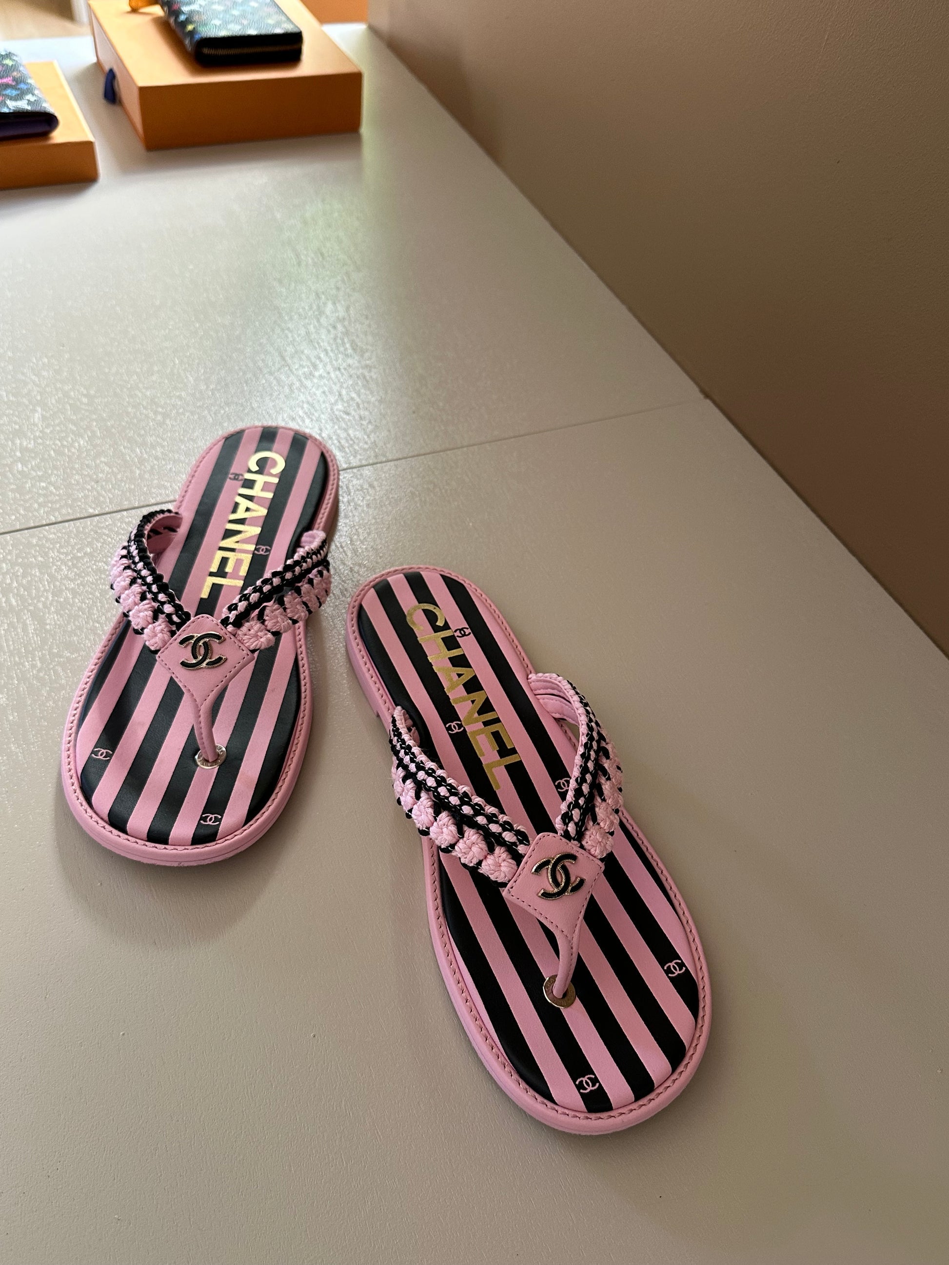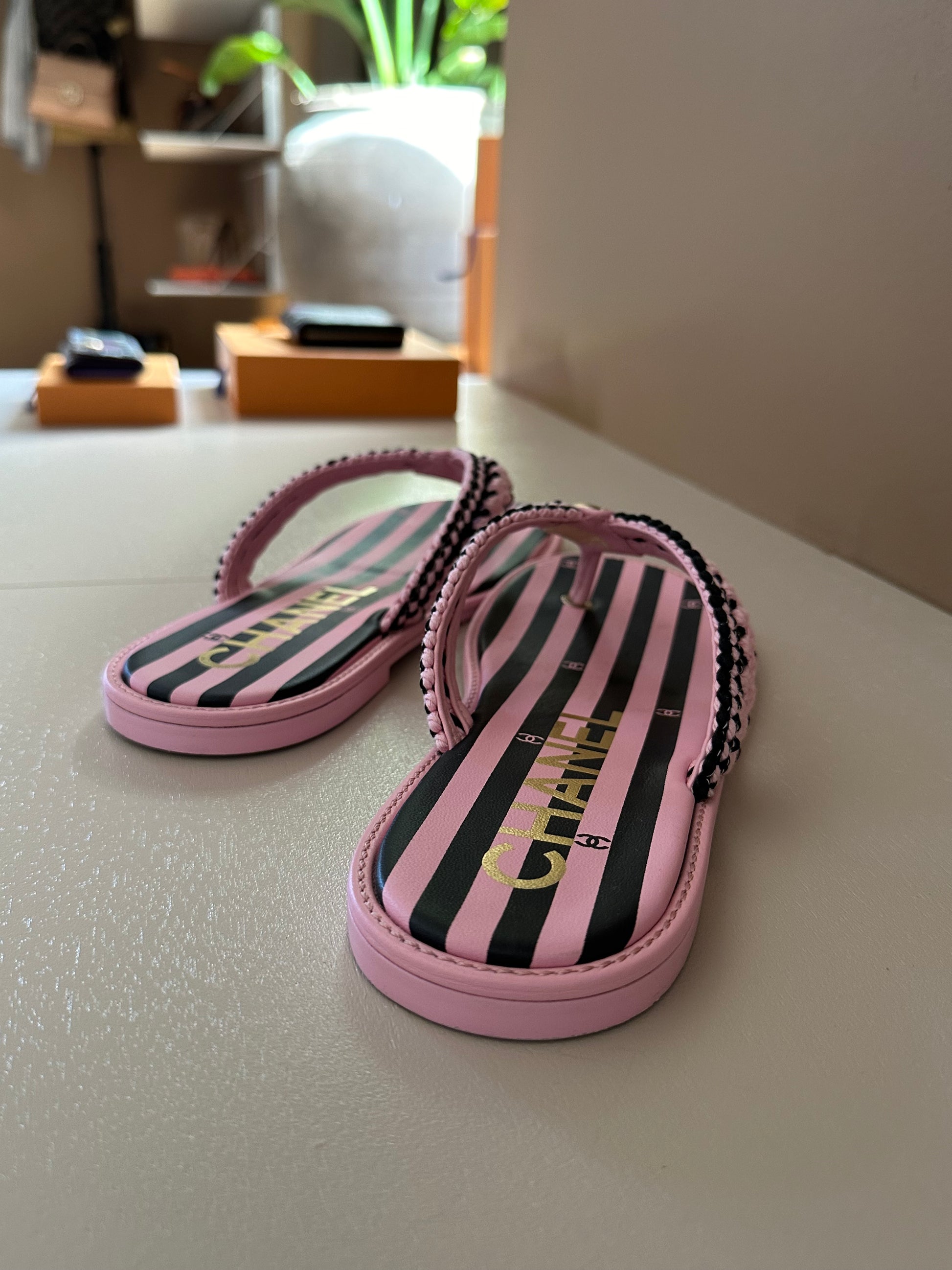 CC 25 Thong Sandal Braided Striped Pink Black