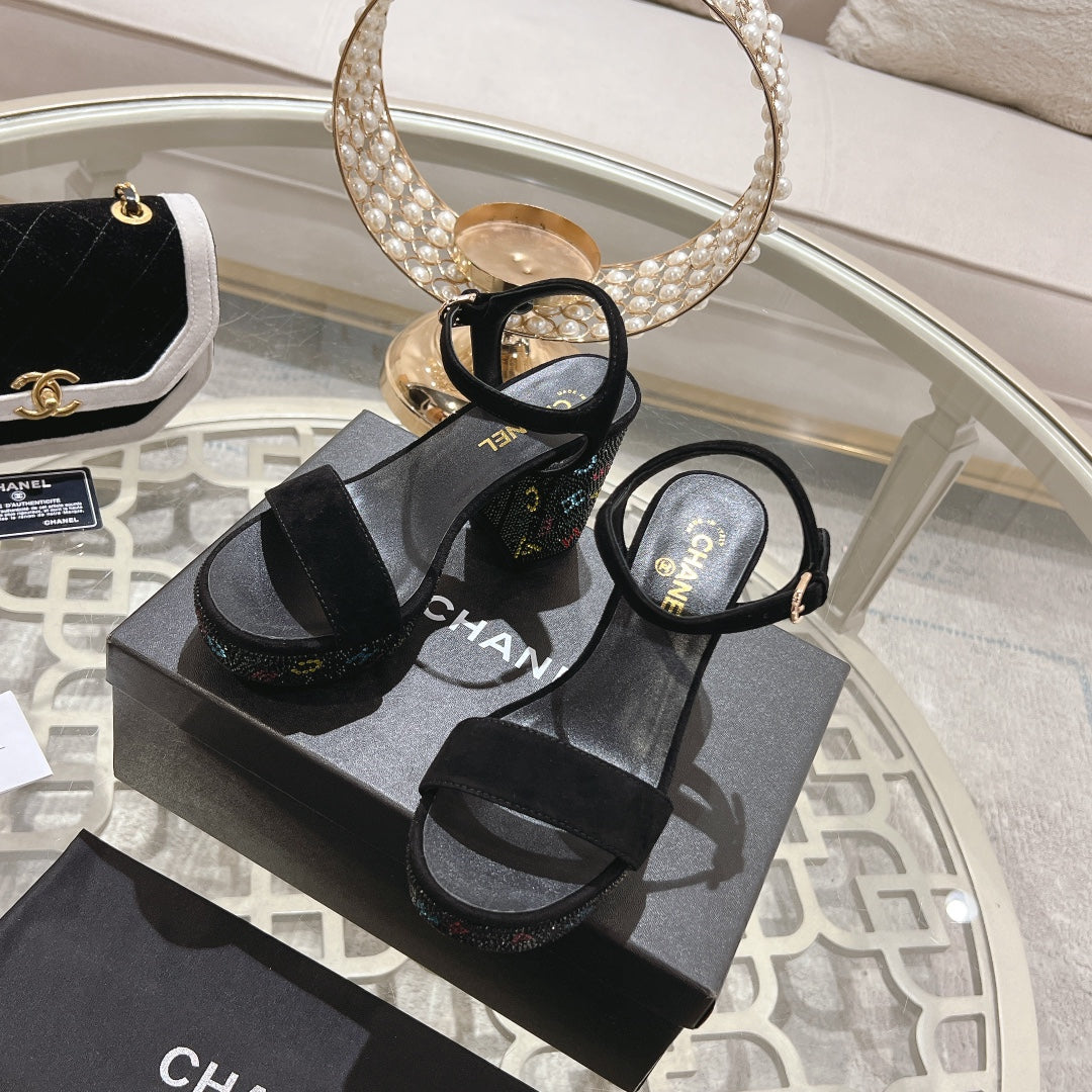 CC 25C 10CM Mid Heed Sandals Black Suede 213328