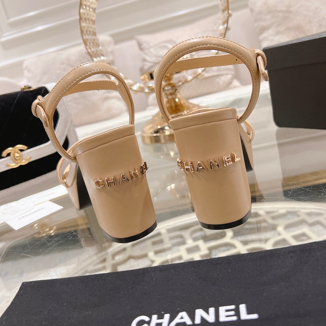 CC 25C 10CM Mid Heed Sandals Cream Italian Leather 213320