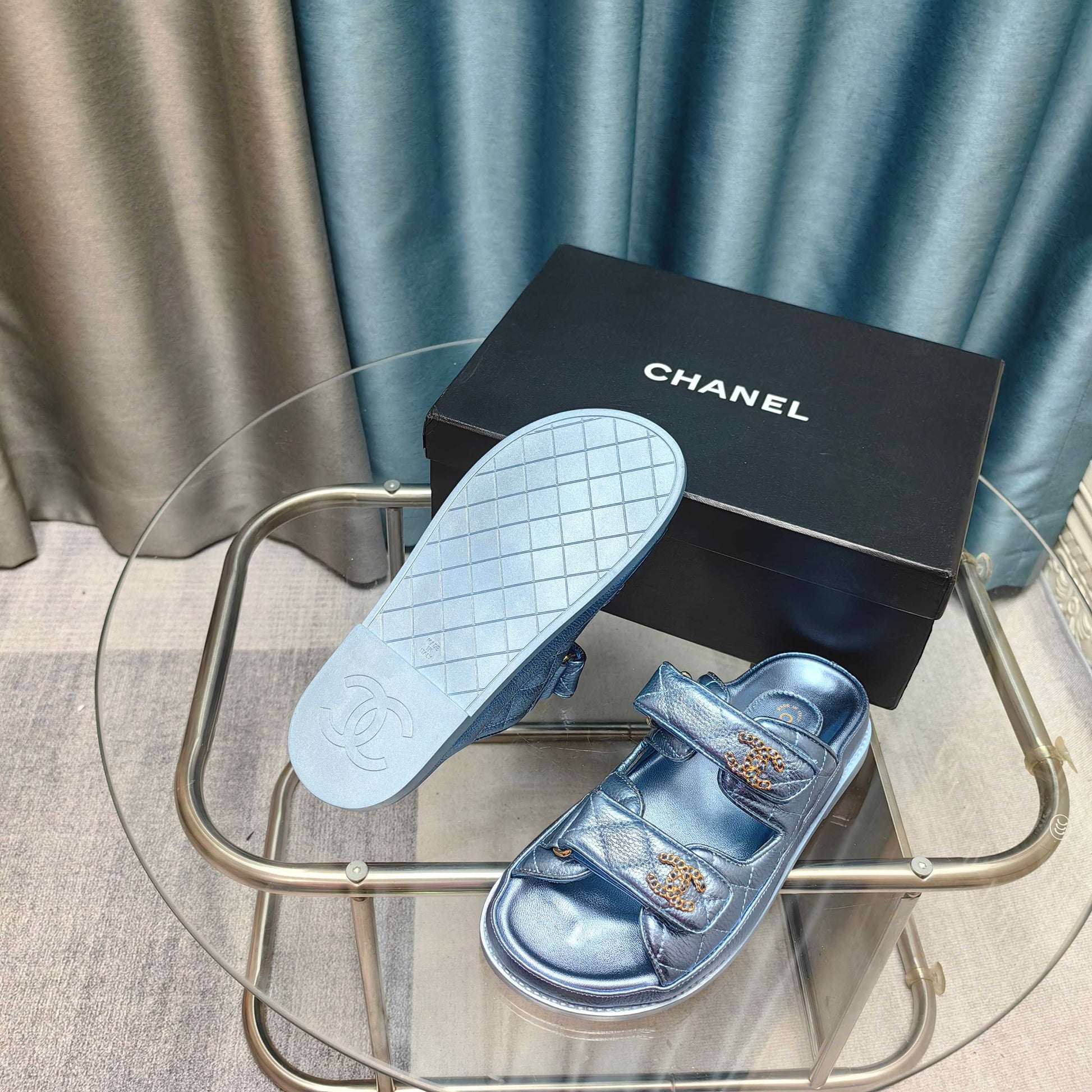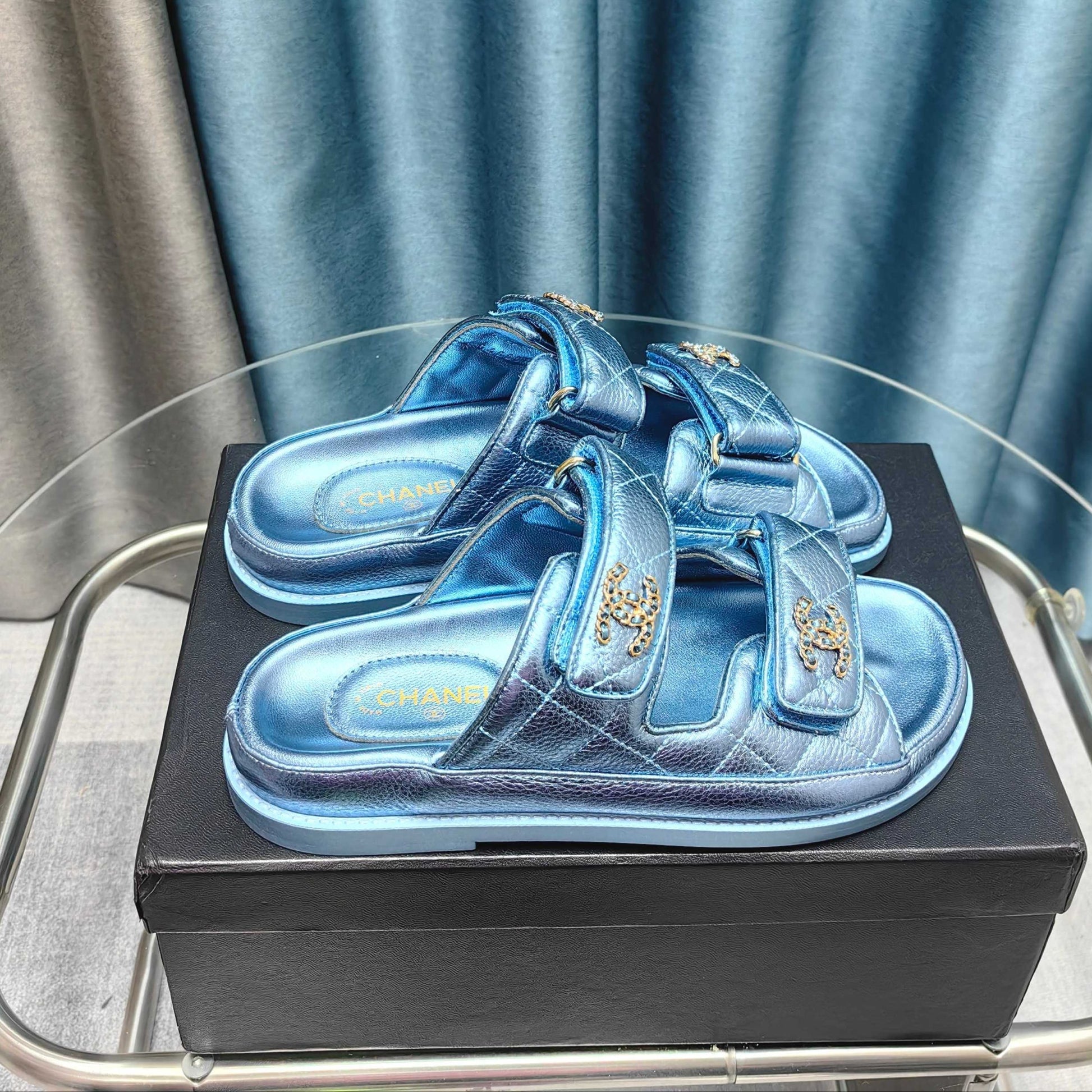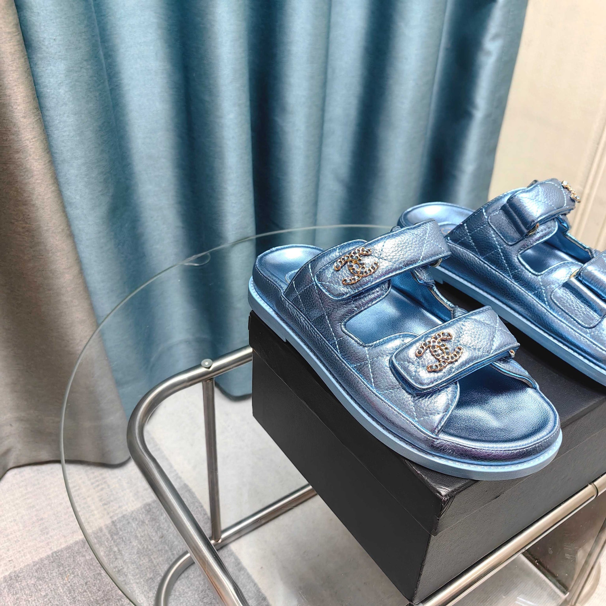 CC 25C Dad Mule Cloud Blue Metalic Grained Calfskin