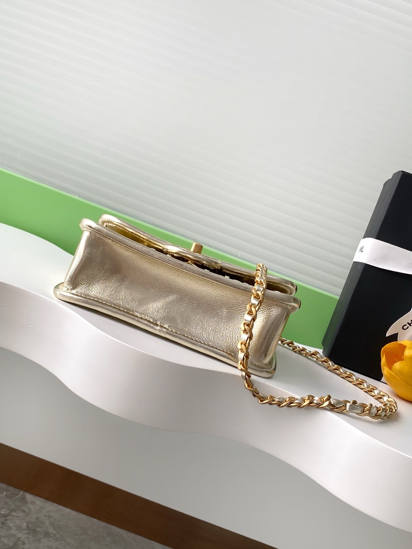 CC 25C Flap Bag 19cm Gold Metalic Quilted Lambskin