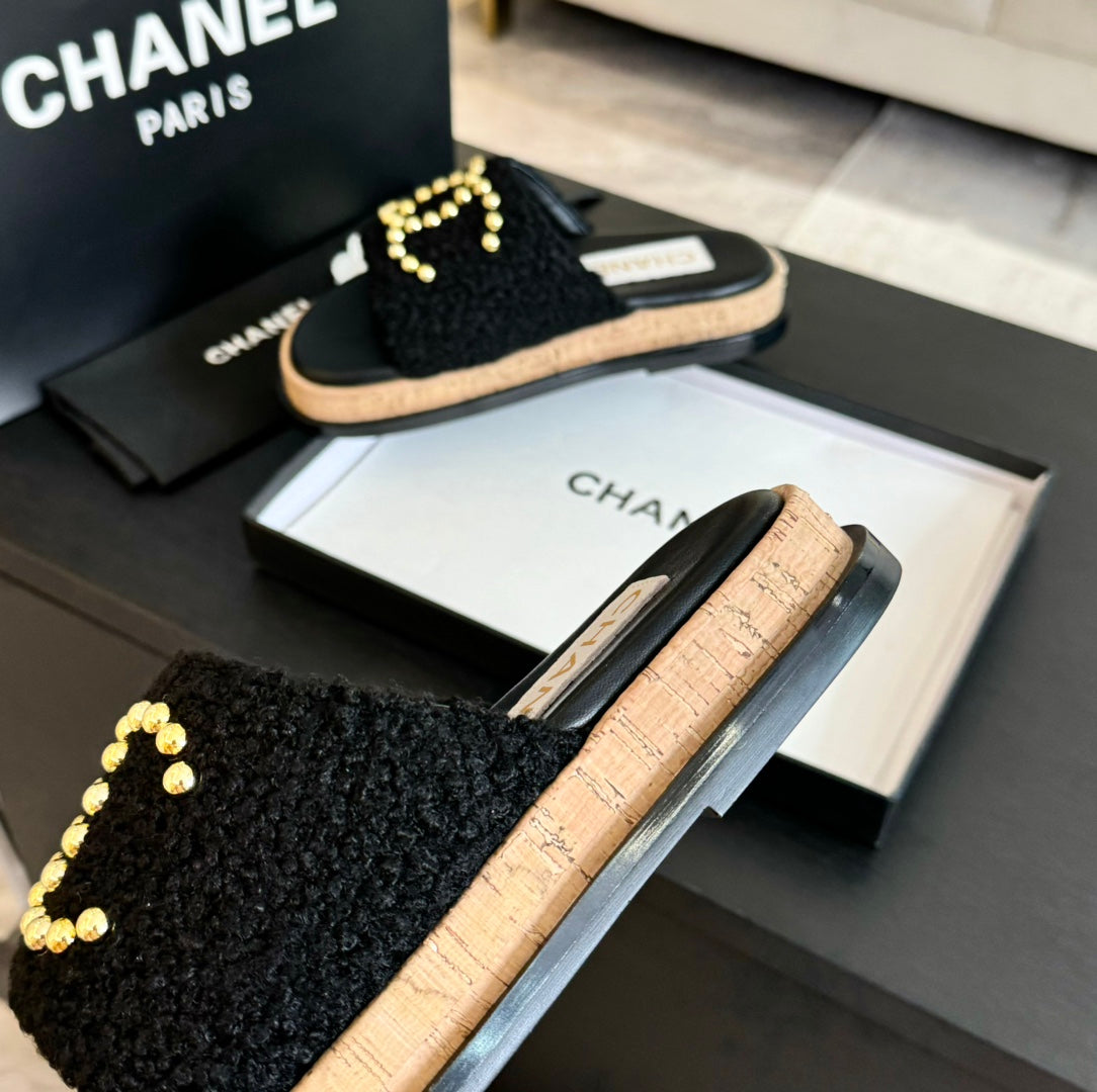 CC 25C Slippers Black Satin Fabric 212979